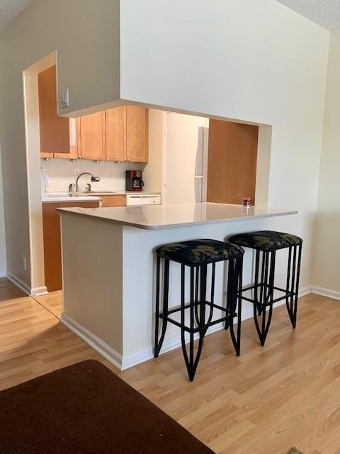 Beautiful 2/1.5 corner unit in Imperial Point Colonnades! Updated kitchen with wood cabinets and granite countertops. Open living space with dining area off the kitchen. Quality laminate flooring in main living areas and tasteful tile in the baths. Bathrooms feature updated vanities & light fixtures. Large bedrooms with walk in closet in the master. Furnishings included. 1 assigned parking space. Storage is on the 2nd floor hallway. Laundry facility is on 2nd floor. Quarterly maintenance fees include cable TV. Great complex with pool, BBQ area and more! Well located by US1 in the middle of restaurants, shopping and the beach.