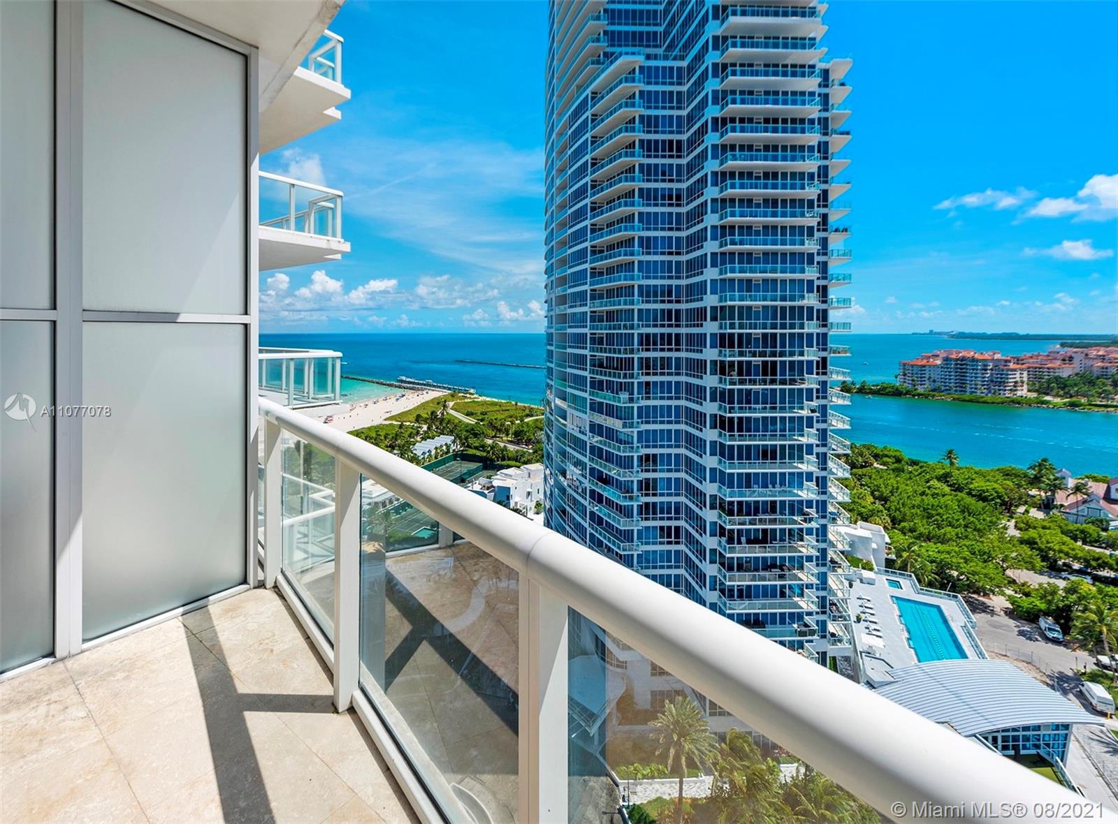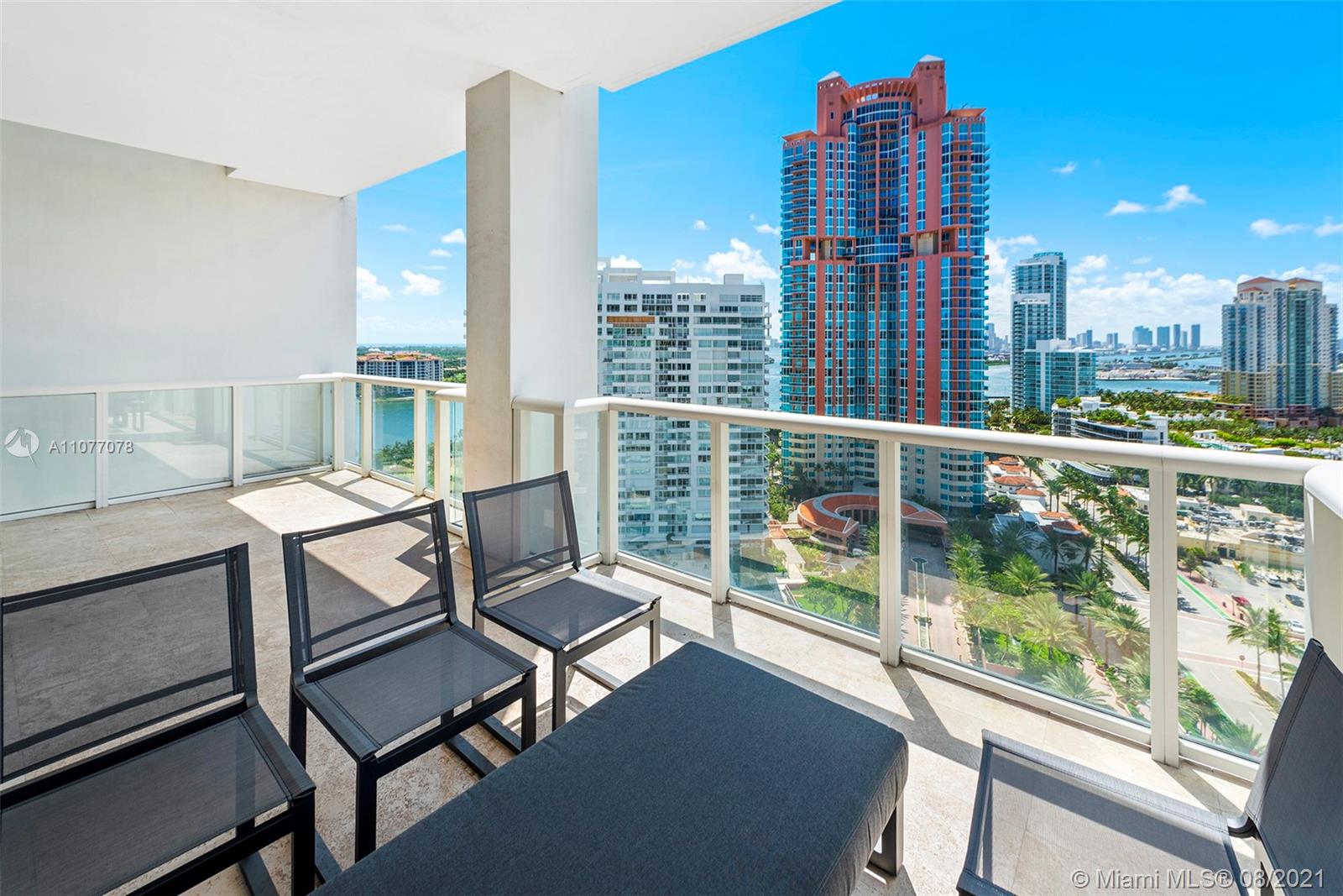 Enjoy striking southwest exposures from this corner residence with the most beautiful sunlit Miami Beach views, parading cruise ships passing Fisher Island and vistas all the way out to the port of Miami and Downtown skyline sunsets. Upgraded modern baths and a unique kitchen wrapped by floor-to-ceiling glass, with its own balcony, are some wow features. Multiple terraces, including an oversized double width terrace, are amazing for outdoor entertaining. The split floor plan features a private lobby, formal living + dining rooms with dynamic views, plus huge storage area. Continuum is a 13 acre, private beachfront oasis with amenities and attention to its residents second to none. Private restaurant and beach club, 3 har-tru tennis courts, 3 story gym/spa/salon plus 3 pools.
