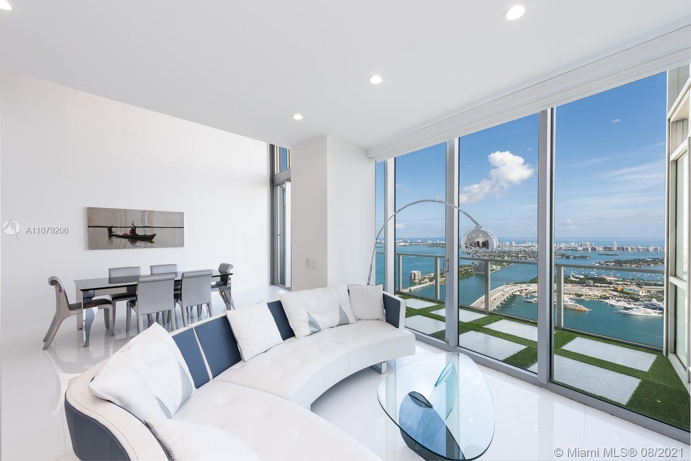 Absolutely impressive vistas in every direction awaits for you in the stunning tri-level PH at the iconic Marquis Miami Residences. Live in the center of prime Downtown Miami, minutes to Miami Beach, across the street from Museum Park, home to the Perez Art Museum, Frost Museum of Science and Miami Heat games! Mega yachts are sprinkled right in front of your grand master suite with its sitting lounge and a wonderful spa bath retreat, all with open water views! Soaring 20' ceilings impress the moment you enter this fabulous PH perched 650 feet in the air. Lavish rooftop terrace on the third level boasts a wonderful sunny sky lounge & dipping pool. Fully upgraded kitchen features Wolf and Subzero appliances and waterfall marble island. Never lived in and ready for a wonderful life!