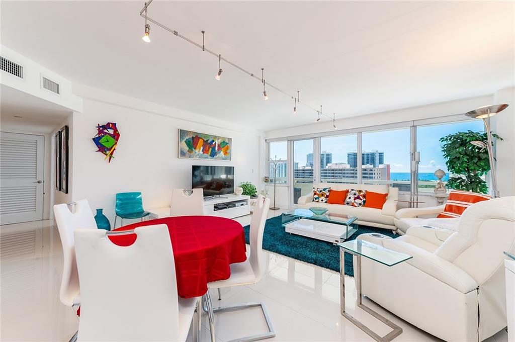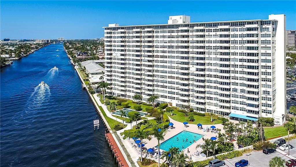 Beautiful apartment with coveted ocean views from every room. This move in ready home features an open contemporary kitchen, updated bathroom and large porcelain tile floors throughout. Hurricane impact windows and doors have been installed. Beautiful tropical landscaping with resort style 30x60 heated pool located on the Intracoastal. This is a financially secure building is located within the gorgeous barrier island neighborhood of the Galt Ocean Mile. Walking distance to the beach, post office, water taxi, restaurants, bank & grocery store. You will love living here! No Pets/No Rentals/No Leasing. Association states one buyer must be at least 55 years old.