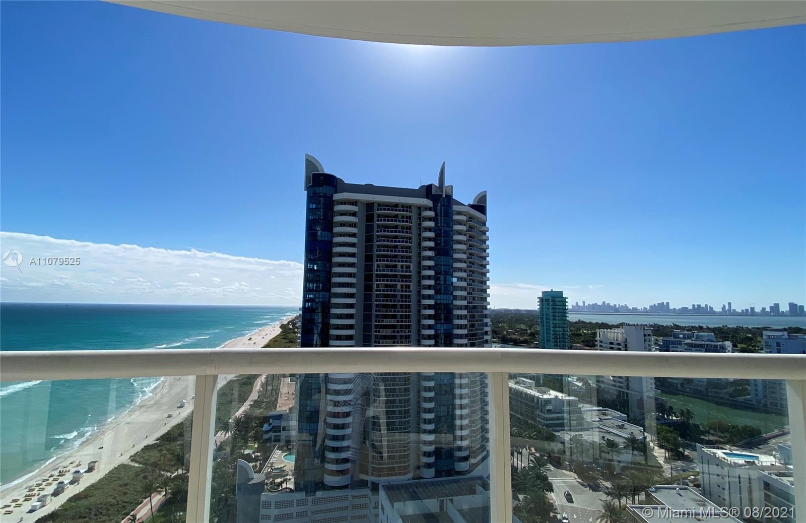 23rd floor unit with breathtaking unobstructed views of the Ocean, Intracoastal and Downtown Miami Skyline! Access to large balcony from living room and master through floor to ceiling sliding glass doors. Recently refinished cherry wood floors. Stainless steel appliances, granite countertops and washer dryer in unit. Luxury amenities include: direct beach access with private beach chairs, state of the art gym w/ direct ocean view, sauna, steam room, tennis court, putting green, heated pool, 24 security and attended front desk, 24 valet. Enjoy long walks & bike rides along the Miami Beach Boardwalk. Must see!