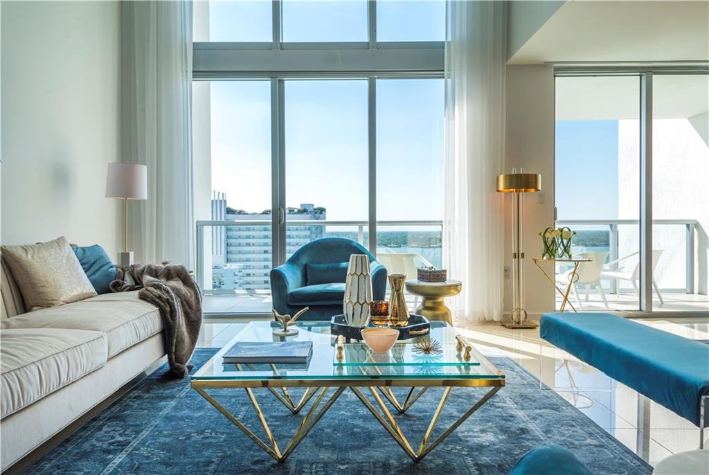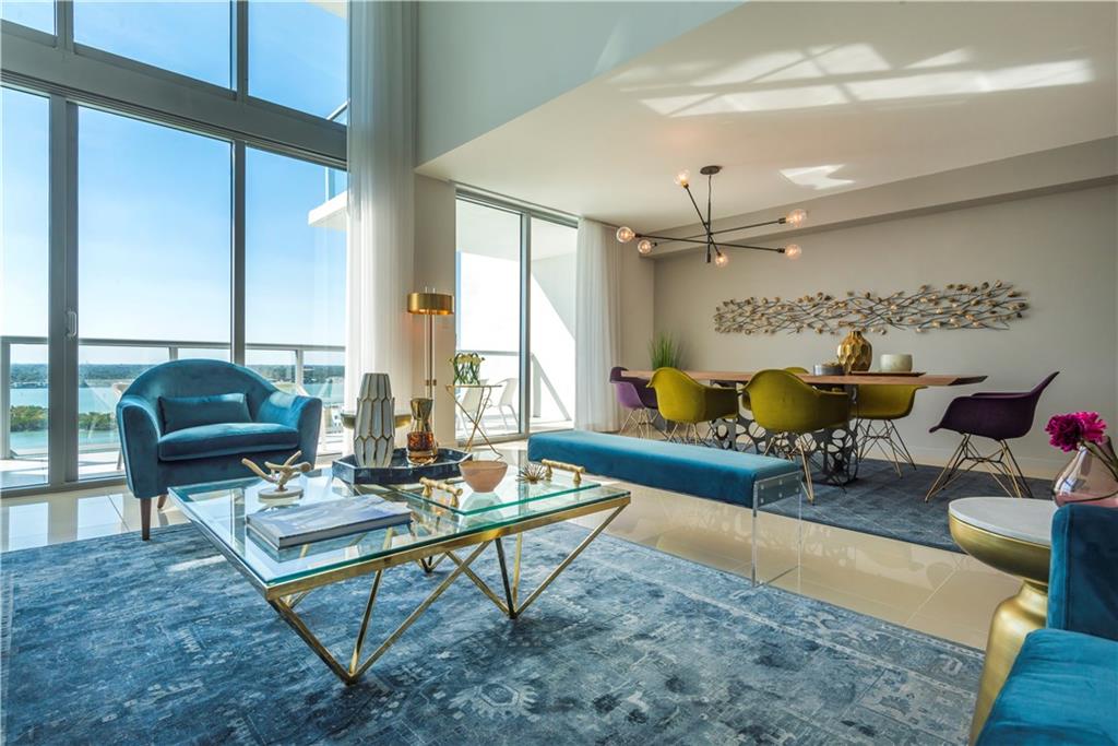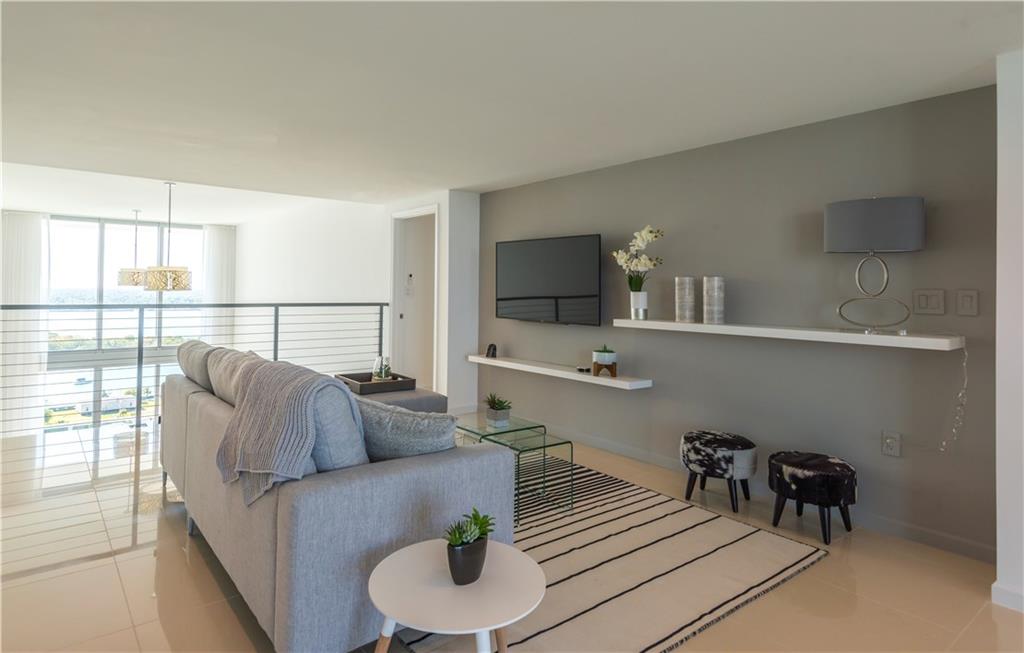 Stunning corner lower penthouse in luxurious Eloquence on the Bay condominium with sunrise to sunset water views from every room. One of a kind home in the sky, 3 bedroom 3 and a half bath loft with flow through porcelain tile, high end kitchen aid appliances, custom kitchen cabinetry, large balconies in every room to enjoy the ocean and intercostal views, floor to ceiling high impact windows in every room. Eloquence on the bay amenities are unique also with basketball court, tennis court, jacuzzi, large swimming pool, state of the art gym, event room, 24/7 security and concierge service. This unit includes 2 assigned parking spot.