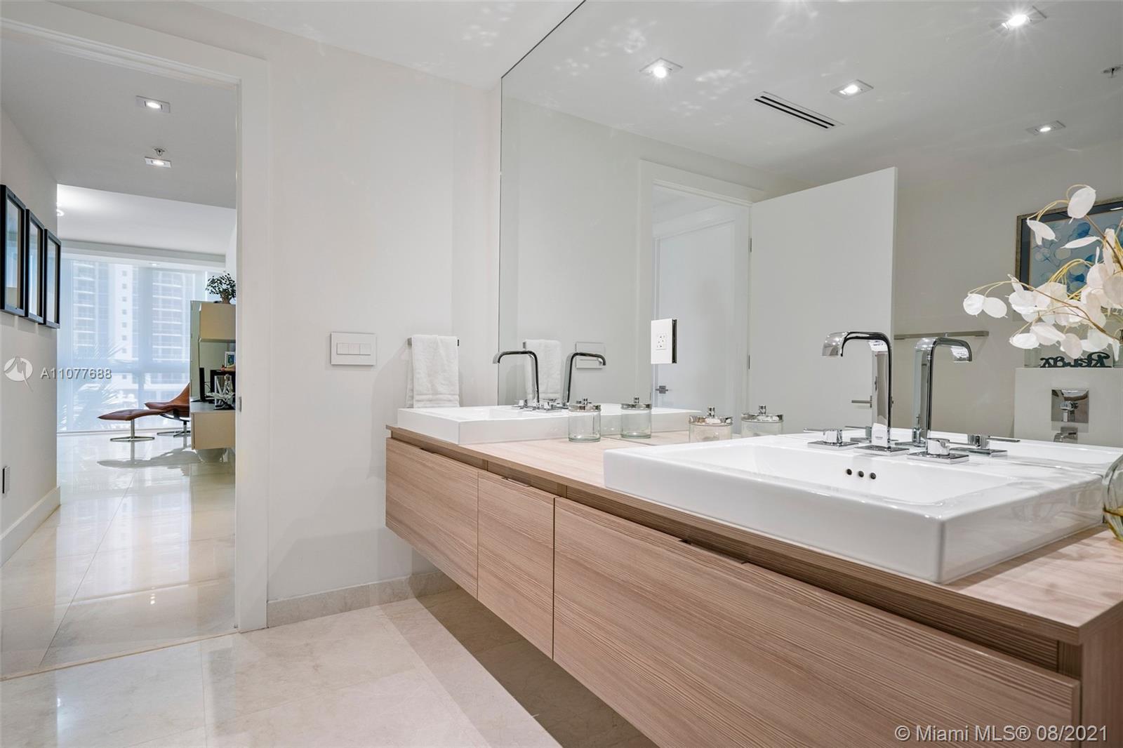 Gorgeous corner unit, overlooking direct bay and marina, with top of the line upgrades. Electric sheers, drop ceilings, 3 parking's assigned and 1 storage. at The Reserve at Marina Palms, luxury building with endless amenities, Club room, billiards, bar, TV lounge, catering kitchen, poker table, news café, business center, conference room, state of the art fitness center with sauna, steam room, spinning center, Pilates studio, yoga deck, teenage center, children center, infinity edge pool with kids pool. Security throughout, guard gate entrance. State of the art Private marina, full service, up to 100' marina slips. Private boat club for residents. Slip 90' at an additional cost. Ask me for details