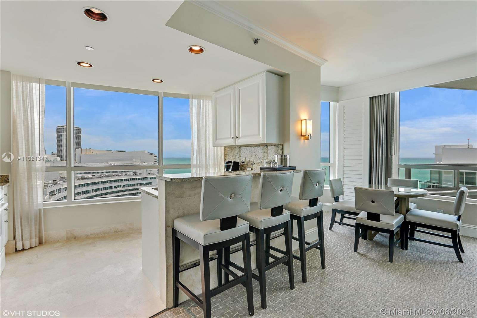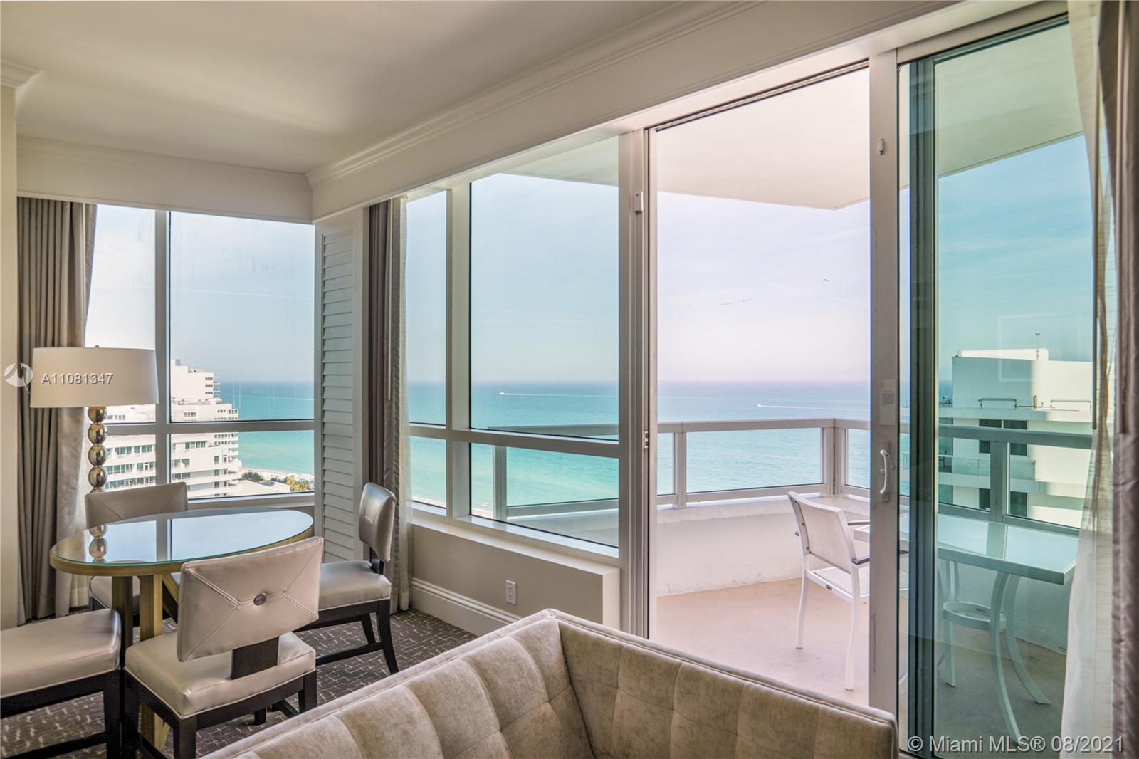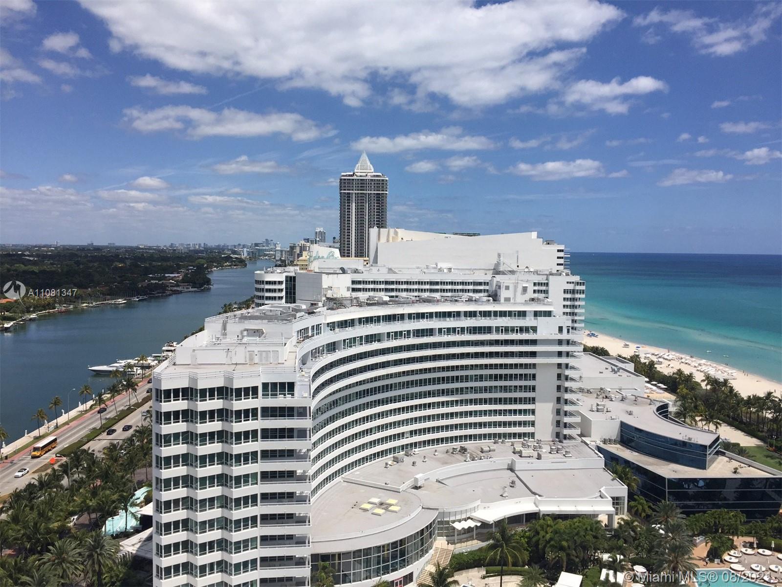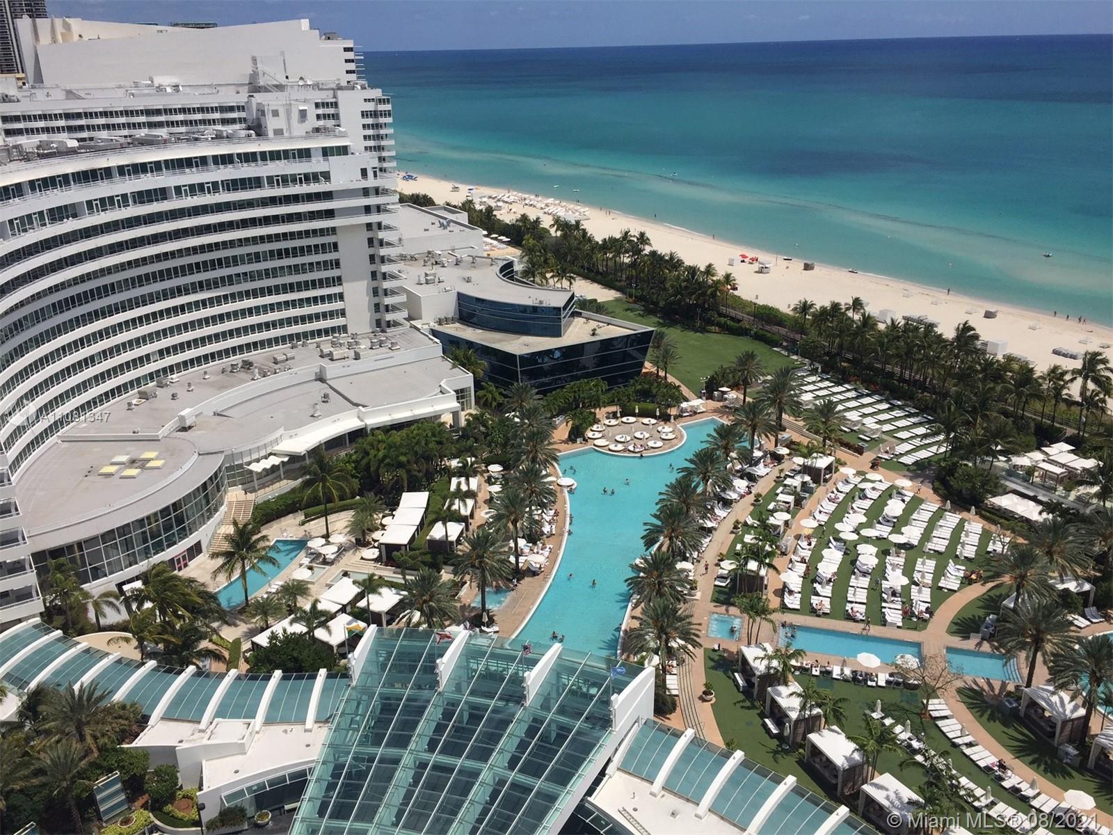 Beautiful 2BD/3BA w/ direct ocean & bay views at Fontainebleau II. Enjoy full service, vacation-style living in a furnished turnkey unit with 2 king beds, 2 sleeper sofas & more. Enroll in hotel rental program & receive income while away! The Fontainebleau Resort offers luxury amenities on 22 oceanfront acres including award-winning restaurants, LIV night club, Lapis spa & state-of-the-art fitness center. Maintenance includes: AC, local calls, electricity, valet + daily free breakfast in the owner’s lounge.