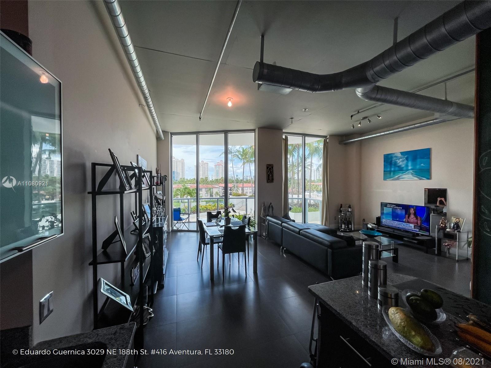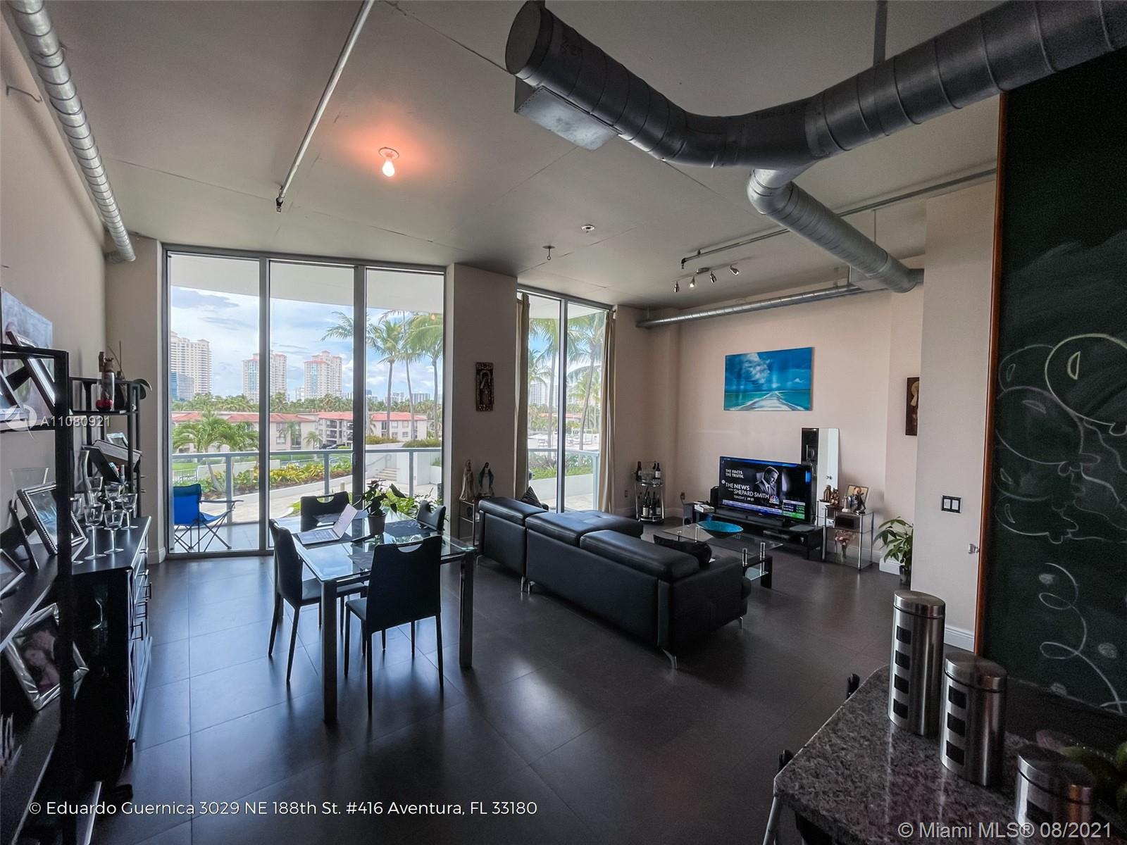 This industrial-chic 1bd/2ba loft apartment offers an unusually flexible layout, vaulted ceilings and floor to ceiling impact windows that allow natural light to brighten the entire space. This unit offers a unique built-in walk-in closet (with storage capacity all the way to the ceiling). OVERLOOKING THE MARINA & POOL AREA. This cool loft is located on the main tower with direct access to the lobby and common areas. The designated parking spot is close to the elevator and has a ramp for convenience. Building offers a range of amenities including a heated pool, hot tub, fitness center, sauna/steam room, tennis & basketball court, business center, valet parking, 24 hour security, private marina, and a lounge. Pet friendly. Basic cable and internet are included in the maintenance.