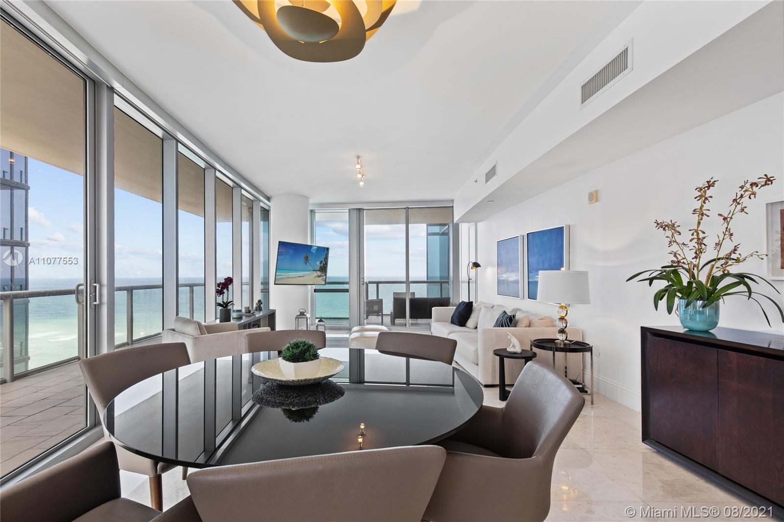 Beautiful corner unit with 3 suites and half bathroom. Gorgeous ocean and city/intracoastal views in the most desirable building in Sunny Isles Beach. Private elevator, foyer, marble floors, top of the line gourmet kitchen with Sub-Zero refrigerators & Miele appliances, electrical blinds and shades Building features 5 star amenities, including infinity sunset and sunrise pool, beach service, spa, sauna, steam room, private theater, children room, concierge and valet. Walking distance shops, grocery stores and restaurants.