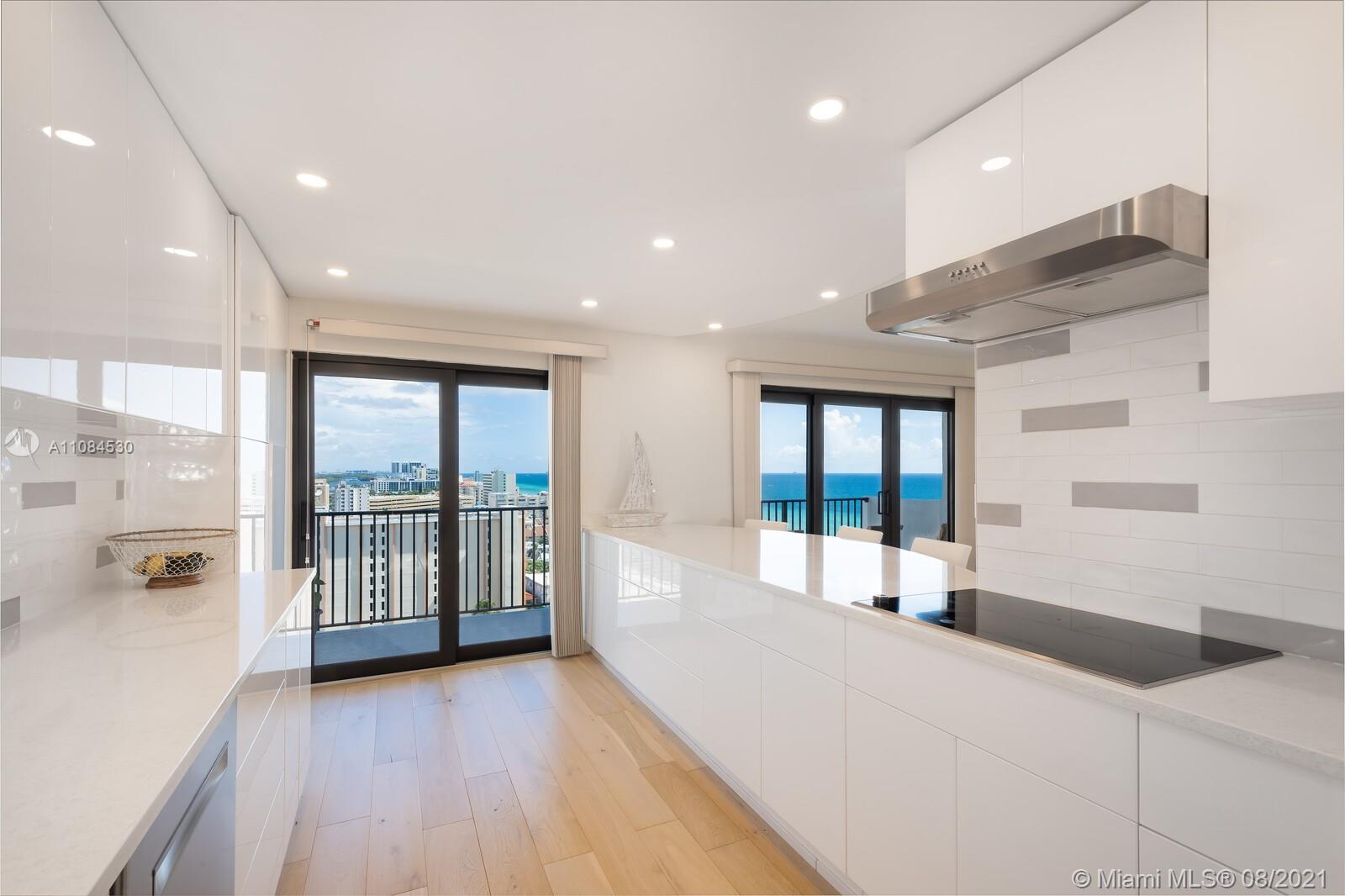 Welcome home to this professionally designed and remodeled beach paradise. Located in Hollywood Florida on the ocean. Features include two bedroom two bathroom 1,570 SQFT under air. Renovations took 18 months to complete from studs out to terrace. Upon entering the space, instant ocean views can be enjoyed thanks to the now open style floor plan. The kitchen, completed w/marine grade wood cabinets, SS appliances, quartz counters. Exterior windows/doors are all now hurricane/impact. BanUltra Tubs in both bathrooms w/jacuzzi style tubs. New electric wiring, LED Lights, panel, fixtures, dimmers. Details include shaved walls, rounded corners with baseboards. The terrace has been updated to a sprayed balcony flooring. New AC unit and duct work. 2 covered parking spaces in garage and storage.