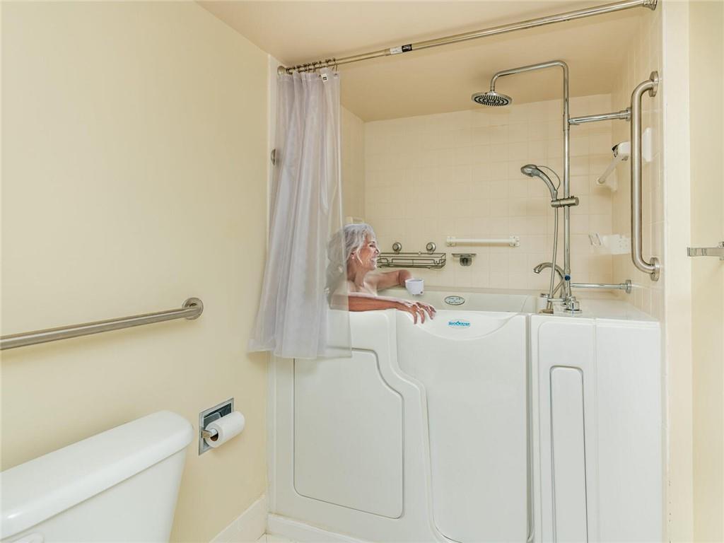 Just Reduced. Accordion storm shutters. Washer/Dryer in your home. Tankless water heater. Handicap accessible Safe Step jet spa walk-in tub/shower. Use elevator or take the stairs every now & then for extra exercise. Breakfast area/eat-in kitchen. Your screened balcony has sunset views & a nice view of the common greenspace & pool (there's a much larger pool at the clubhouse). The alcony has 2nd set of sliding glass doors to close it and cool it with A/C. Neutral tile and laminate floors. 1 assigned parking spot. Plenty of guest parking. Building roof replaced within past 5 years. Full amenity, 24/7 guard gated senior community with lots of social activities & classes. Non-equity onsite golf, pools, fitness center, billiards, movie theatre, free bus transportation, clubs, sailing & more.