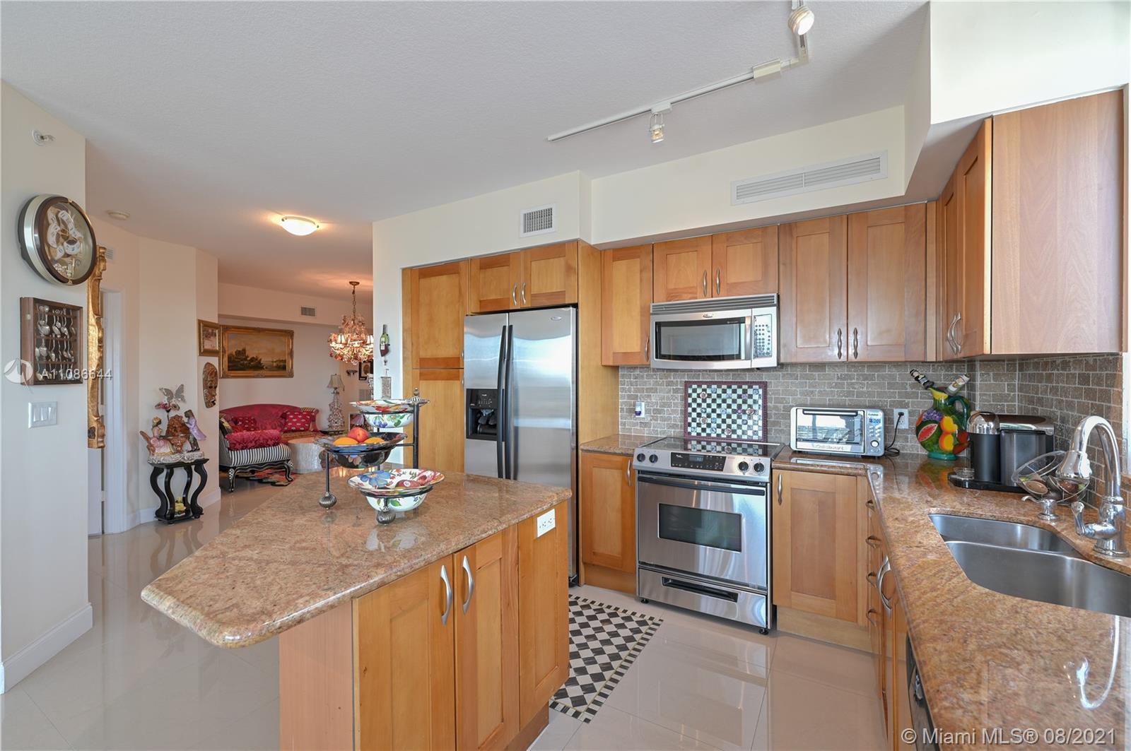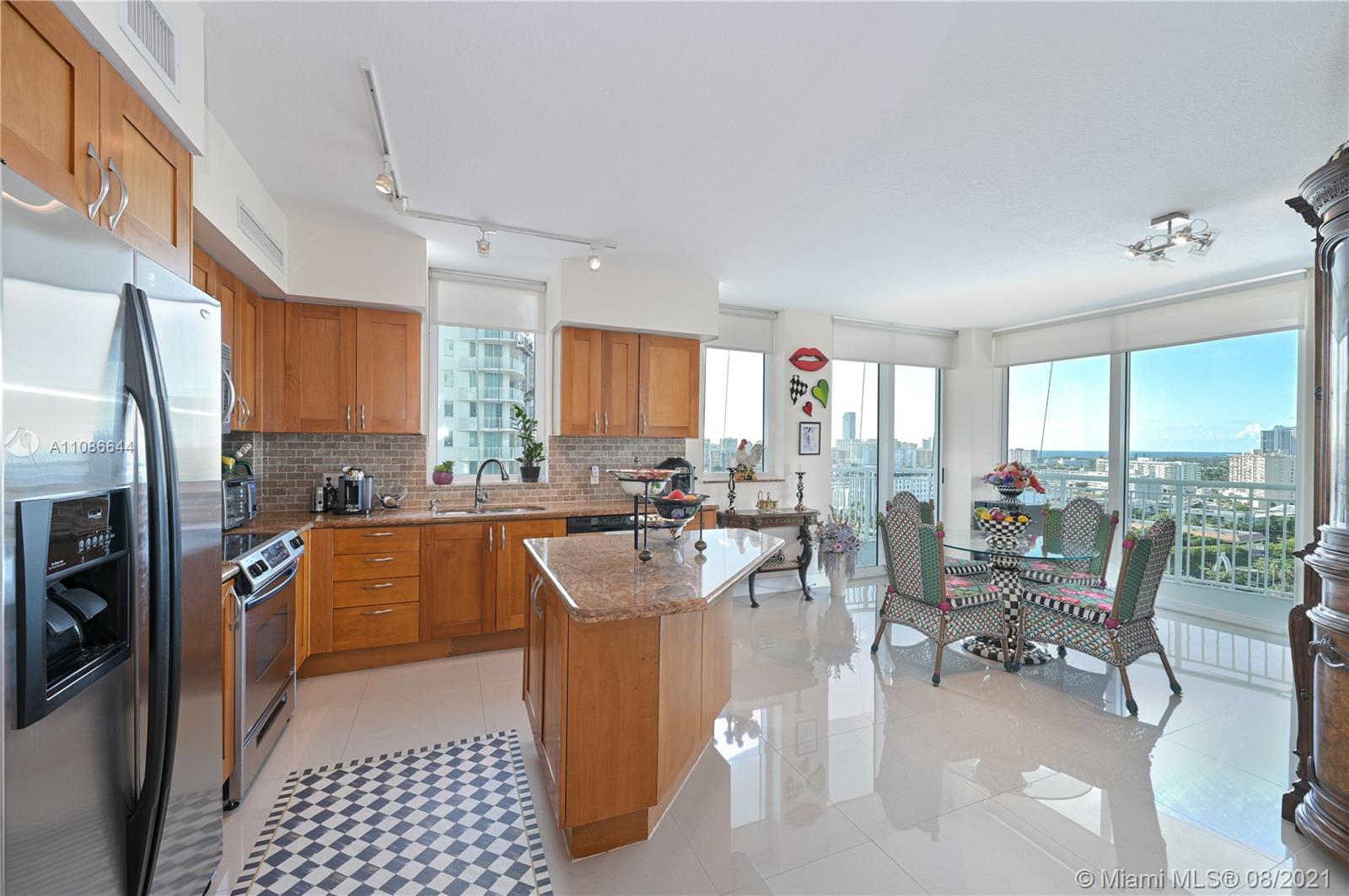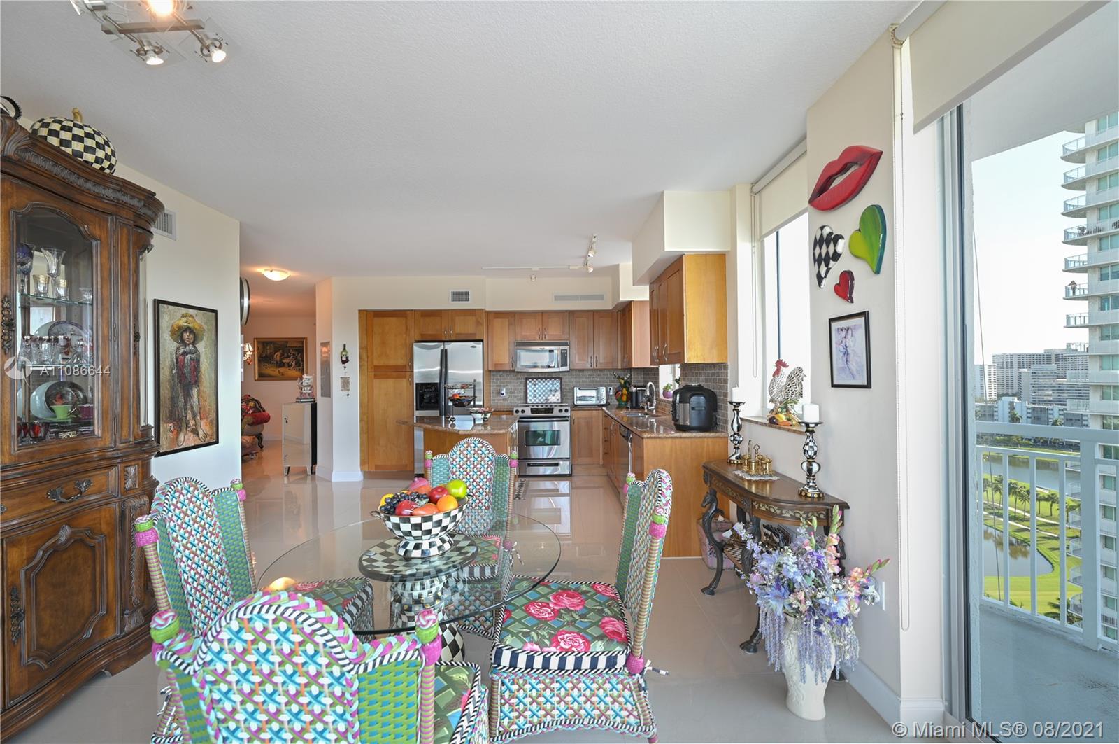 Beautiful high-rise condo corner unit overlooking the Diplomat Golf Course with ocean and city views with wrap around balcony. An abundance of natural light, spacious bedrooms, kitchen w/ stainless appliances, granite counters, washer and dryer in unit. TWO assigned garage parking. In the heart of Hallandale with Starbucks, Panera, Burlington, Winn Dixie and more just downstairs! Enjoy state of the art amenities including a fully equipped gym, pool, spa, steam room, tennis, jogging trail, outdoor fitness equipment, theater room, conference, and party room. HOA fee includes cable, internet, appliance maintenance, and 24-hour security. Special Assessment $222.07 per month (January 2021 for 80 months). ***Chandelier in living room NOT included in the sale***