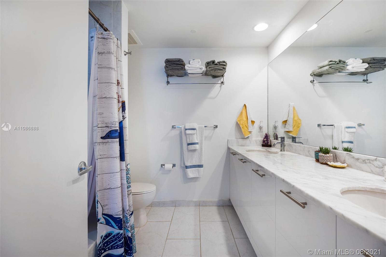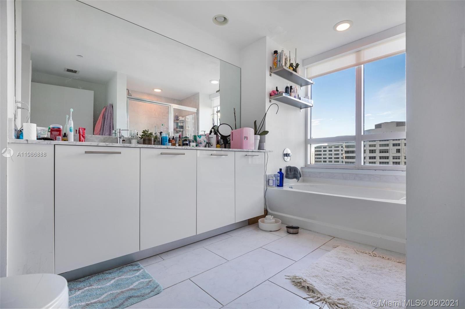 Welcome to the best deal in all of Plaza Brickell for a large 2bed-2.5bath corner unit with fantastic skyline & partial water views. Features include: white porcelain floors, floor to ceiling glass windows, large living space, wrap around terrace, chef kitchen w/ss appliances, w/d & more. The Master bedroom has floor to ceiling glass windows, huge walk in closet w/custom built-ins, and a huge master bathroom on-suite with private tub & separate shower. The guest bedroom is another master suite w/3 large closets, access to the terrace & also an on-suite large bathroom with double vanities & tub. Guests have access to their own half bathroom. Plaza is situated in the best location in Brickell steps from shops and the malls and restaurants. Hotel like amenities: pool, gym & business center.