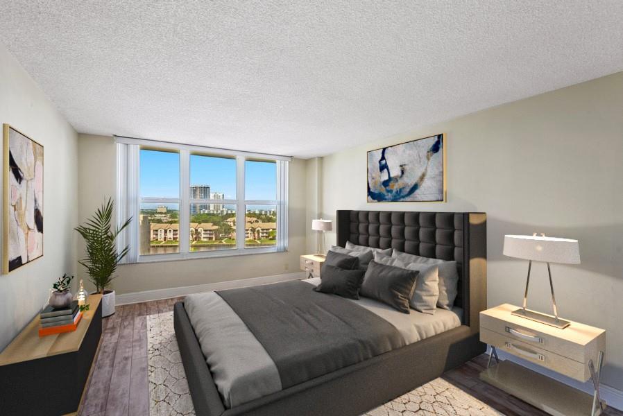 Fantastic corner unit with wraparound balcony in The Hallmark. Enjoy beautiful Intracoastal views, sunsets and a peek-a-boo ocean view as well. This unit has all impact doors and windows (replaced within the last year). The kitchen has been opened up partially to the dining/living room. Amenities include valet, secure lobby with doorman, exercise room, pool, sauna, BBQ area, billiards & more! Minutes to malls, restaurants, casinos & airports. I covered parking space & 1 storage locker included.