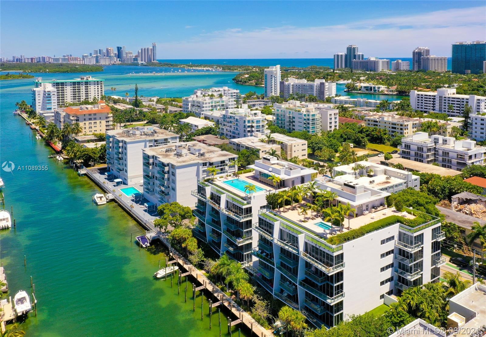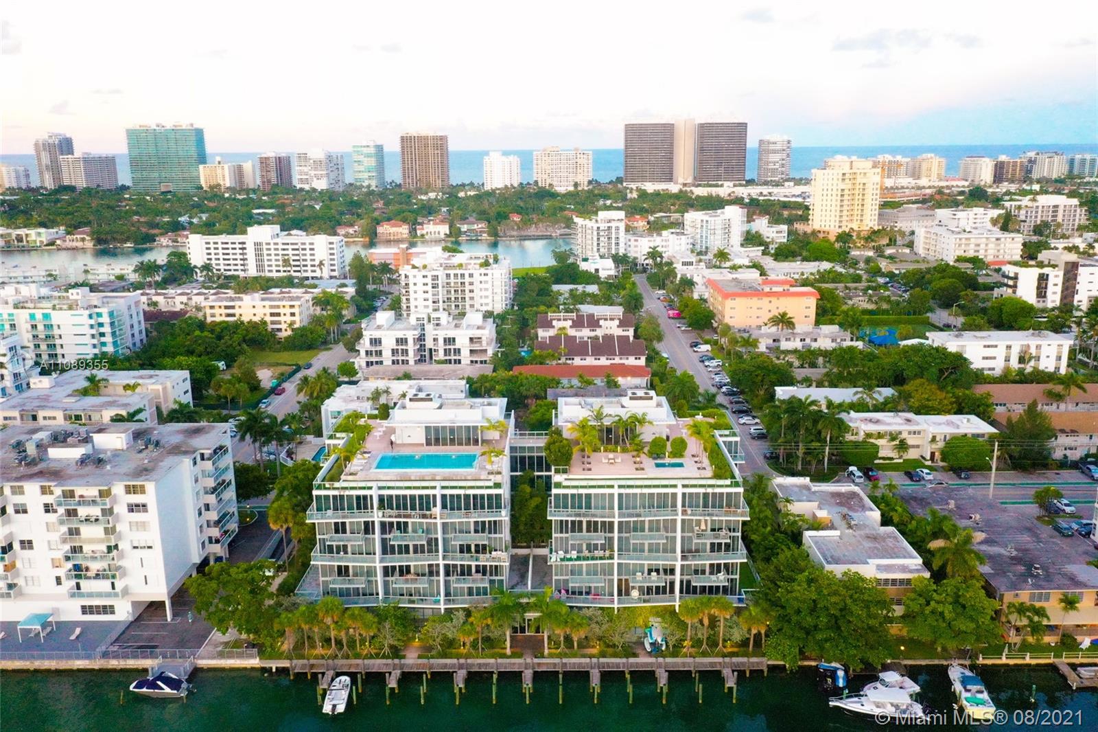 Beautiful waterfront boutique building designed by Arquitectonica. Only 57 units on this building located on Bay Harbor Islands sitting on the canal with amazing rooftop pool, hot tub and BBQ area. Unit comes completely furnished, never lived in. Walk to the beach, Bal Harbour Shops, houses of worship, great schools, golf course and restaurants. Safe and peaceful area close to everything. Two bedrooms plus enclosed den/office and 3 full bathrooms. Building has gym, storage, spa, rooftop pool, fireplace, party room, security and 2 parking spaces (lift system). Pets up to 40lbs allowed by HOA (1 pet per unit). CLICK ON VIRTUAL TOUR TO SEE VIDEO. Furniture available for sale also.