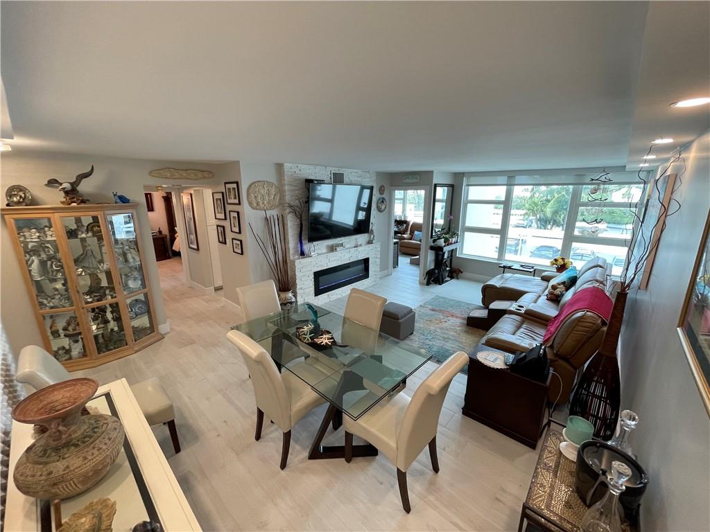 Unit completely renovated in 2019. 1 bedroom, 1.5 bathroom with a den and extra storage by front door, newly tiled floors, New AC, New Electrical, Full impact windows/doors, brand new kitchen cabinets / appliances, upgraded lighting, tiled balcony, in-unit washer/dryer combo, master walk-in closet, electric fireplace, automatic blinds and built in entertainment center. Building is a beachfront condo with easy access to a quiet section of Fort Lauderdale beach, has already passed 40 year inspection, 24-hour security, huge back deck with heated pool, grill area, shuffleboard; fitness center; game room, Tennis Courts, Pool and card tables; library; sauna rooms; basement storage and covered garage space. Walk/Bike distance to Assumption Catholic Church, Publix and Sea Watch Restaurant.