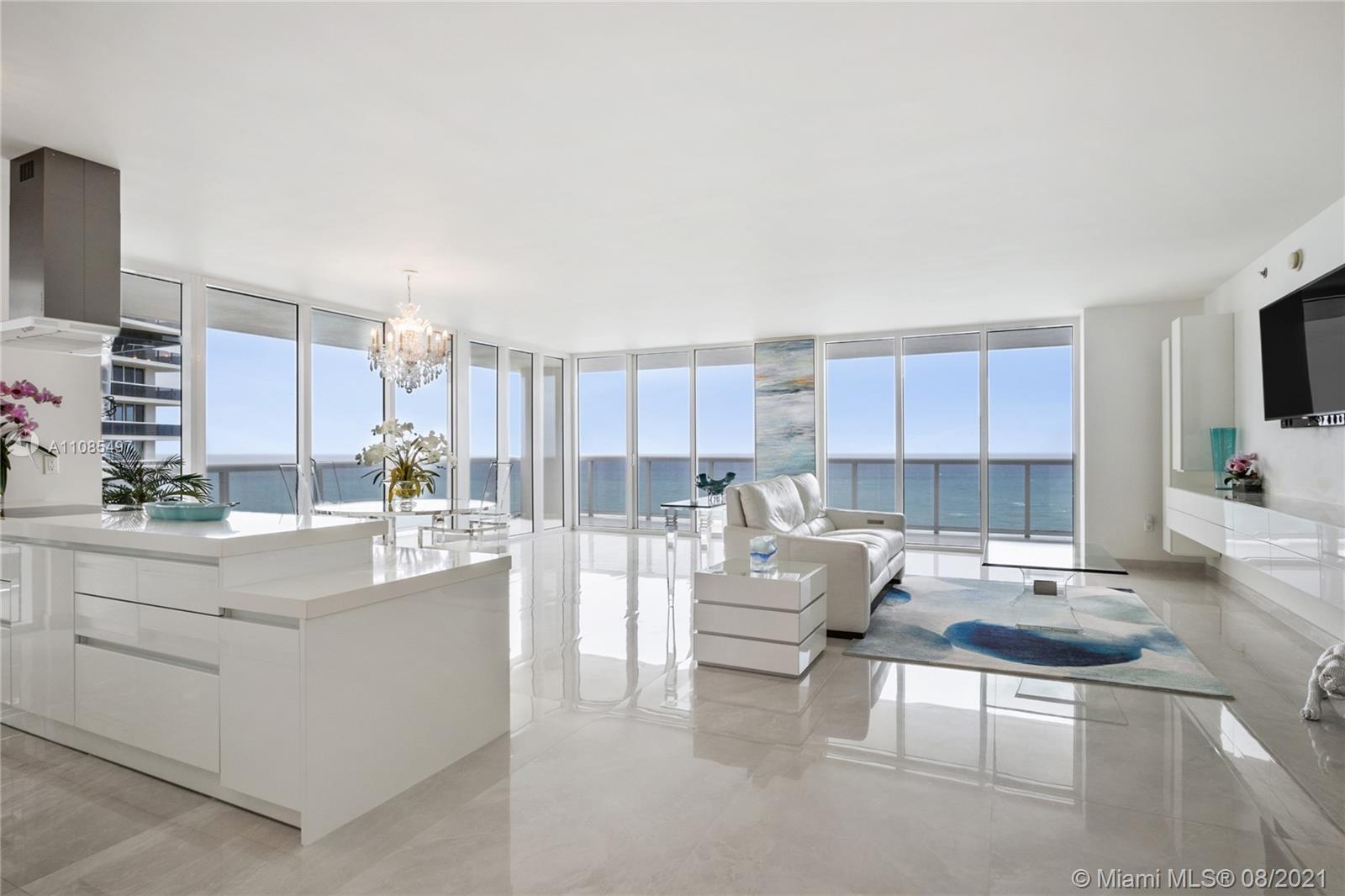 First time on the market! Corner unit with direct views of the ocean from every room. Spacious 2 bedroom plus den, 3 ½ bath features brand new white kitchen with quartz counter top, custom marble backsplash, European lacquer cabinets, new Wolf range, Miele dishwasher and Liebeherr fridge. Floor to ceiling windows, light porcelain floors throughout, many custom upgrades including built-ins and storage. Over 450 sq. ft. wrap around balcony. Building features luxury amenities including oceanfront gym and spa, restaurant, 5 heated pools, 24 hour security, valet parking and much more. Centrally located near Miami and Fort Lauderdale airports, Aventura Mall, Gulfstream Racetrack & Casino. Add’l self parking spot available for sale $30K