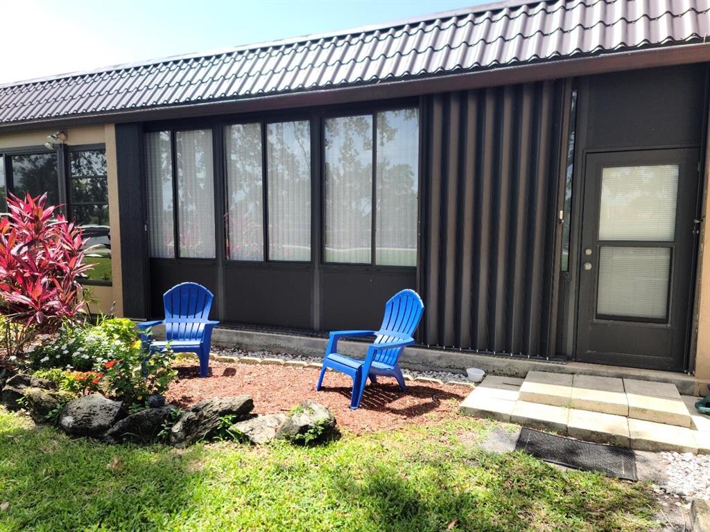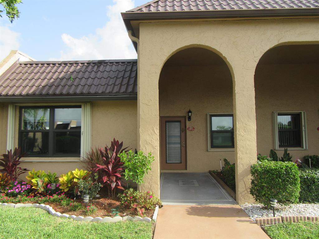 UNIQUE MODEL VILLA, 9' CEILINGS, A COVERED FRONT PORTICO 14 X 6 WITH A COVERED GARDEN , ALL BEAUTIFULLY LANDSCAPED ! 2 BDRM, 2 BATH , SPACIOUS KITCHEN W/ NEW STAINLESS STEEL APPLIANCES, UPDATED PLUMBING & ELECTRICAL. HAS NEW A/C & WATER HEATER.HAS CEILING FANS W/ LTS IN ALL ROOMS EXCEPT KITCHEN. TILED FLOORS THRU OUT. BATHROOMS HAVE UPDATED PLUMBING & BIDETS ON BOTH TOILETS. NEW BRONZE HURRICANE INMPACT WINDOWS IN FRONT & ACCORDION SHUTTERS ALL AROUND. PATIO IS UNDER AIR & HAS HUGE UTILITY CLOSET WITH WASHER & UPGRADED STEAM DRYER. PATIO CAN SERVE AS OFFICE, FLORIDA ROOM OR 3 RD BEDROOM. BEAUTIFUL VIEW OUT BACK W / A LANDSCAPED SITTING AREA. NEW GUTTER GUARD INSTALLED JULY 2021. CABLE INCLUDES EXTENDED CABLE & WIFI. ACROSS THE STREET FROM CLUBHSE B & ALL THE AMENITIES ! POOL,