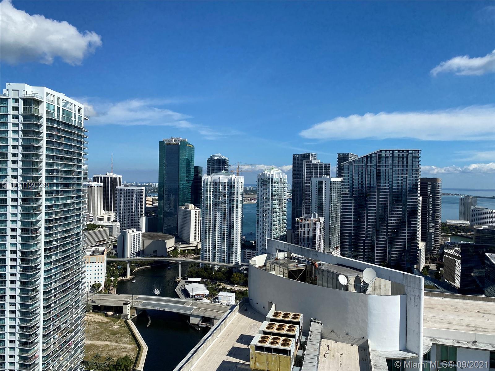 Stunning corner unit with breathtaking views of the Brickell Skyline and Biscayne Bay. This unit is tiled throughout and has custom cabinetry in both closets. This is one of the only two units with a semi private entrance on the 38th floor. Latitude is undergoing major renovations of the exterior and pool at no cost to the owners! The maintenance fee includes cable, water, hot water, and garbage. The unit comes with one assign covered parking. HOA fee will increase to 1022.55 Starting Jan 2022