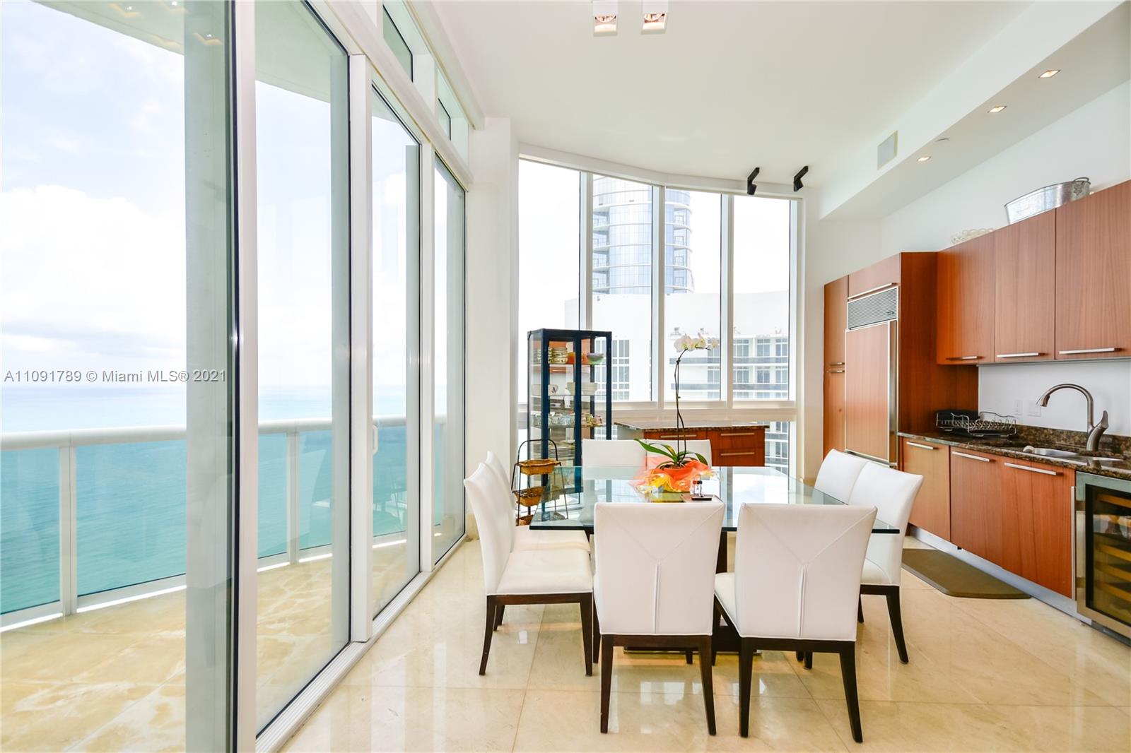 PRICED TO SELL! High floor unit with unobstructed ocean views from all three bedrooms and living room. All bedrooms have its own private bathrooms with floor to ceiling windows facing east. This unit has higher ceilings than other floors (12’feet), private elevator entrance, marble floor 48x48 , and marble baseboard. Unit has professional sound and illumination system. The building has high end amenity services, full onsite restaurant with unit & beach service. Nice gym, with spa and yoga room, full steam saunas. Location is minutes away from Bay Harbor shops and Aventura Mall Easy to show.