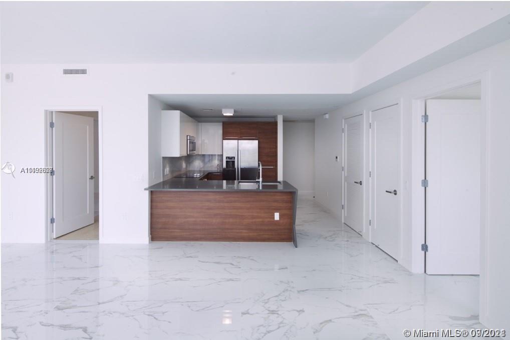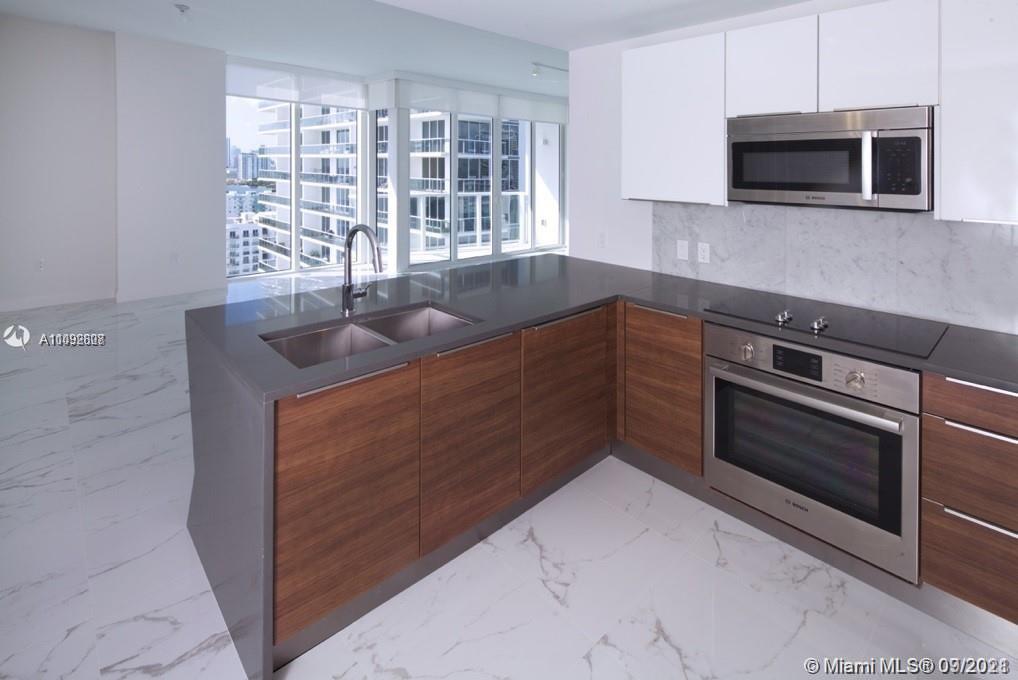 The Crimson waterfront residences are located at Biscayne Bay and 27th St. The buiding is LEED-Silver Certified Energy Efficient and was built in 2016. The unit has beautiful bay and skyline views, spacious terraces with glass railings, Italian cabinetry, quartz countertops, custom backsplash, Bosch a/c appliances and s/s undermounted sink. The unit has European-style bath fixtures, , f/s stacked front-loading washer and dryler, energy efficient a/c system with touch control thermostat, wall sound insulation and energy efficient and impact-resistant windows and sliding glass doors. The flooring is white marble and all closets have custom-made cabinetry with drawers included. The area is the trendy Edgewater neighborhood.