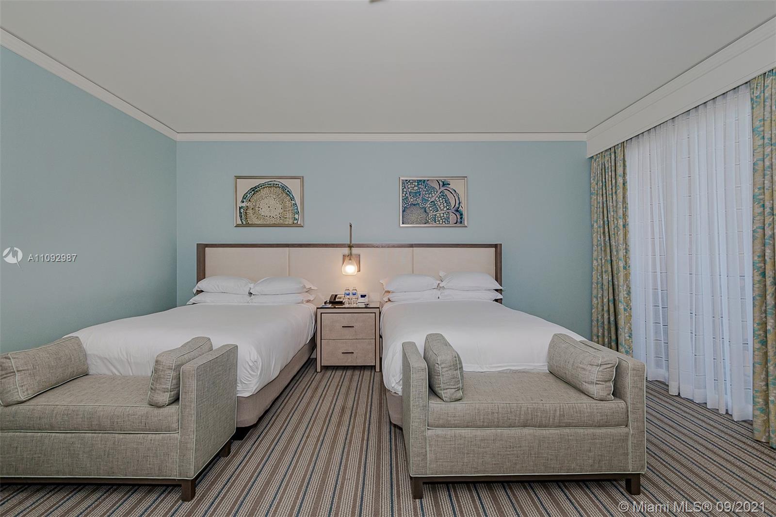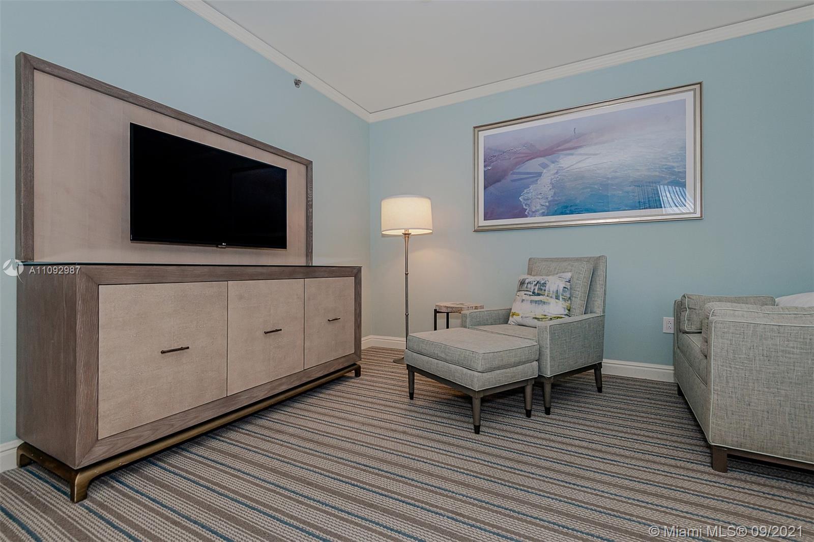 Large studio unit in the Ritz Carlton Key Biscayne, the "17" line unit which is larger square footage than standard studio unit. Fully furnitured and equipped for the hotel program if desired. Unit is currently in the hotel program. High floor unit with Bay views and sunsets. Enjoy the amenities of the Ritz Carlton spa, restaurants and grounds right on the Ocean. On assigned parking space Live like you're on vacation.
