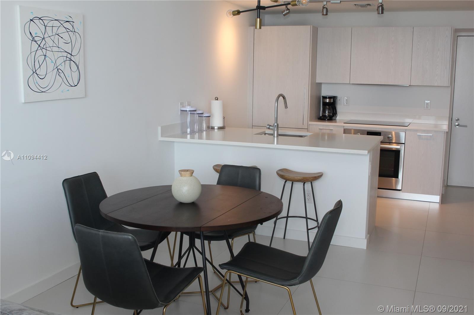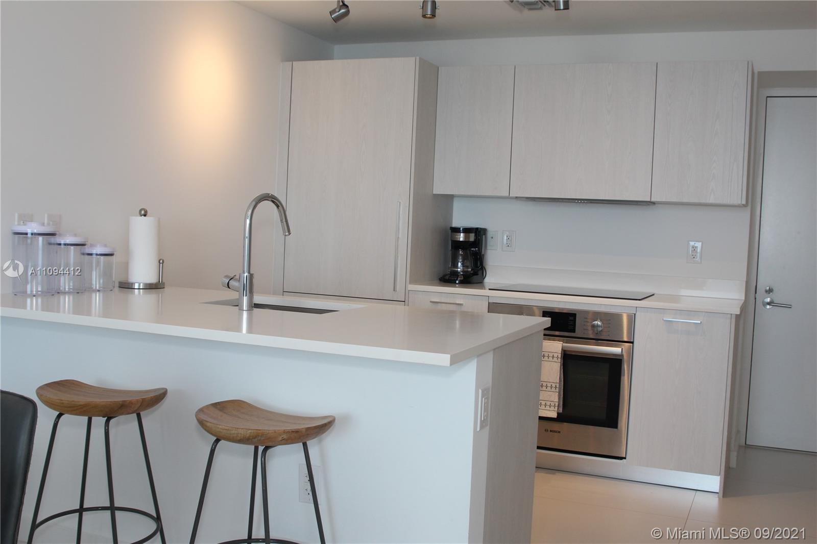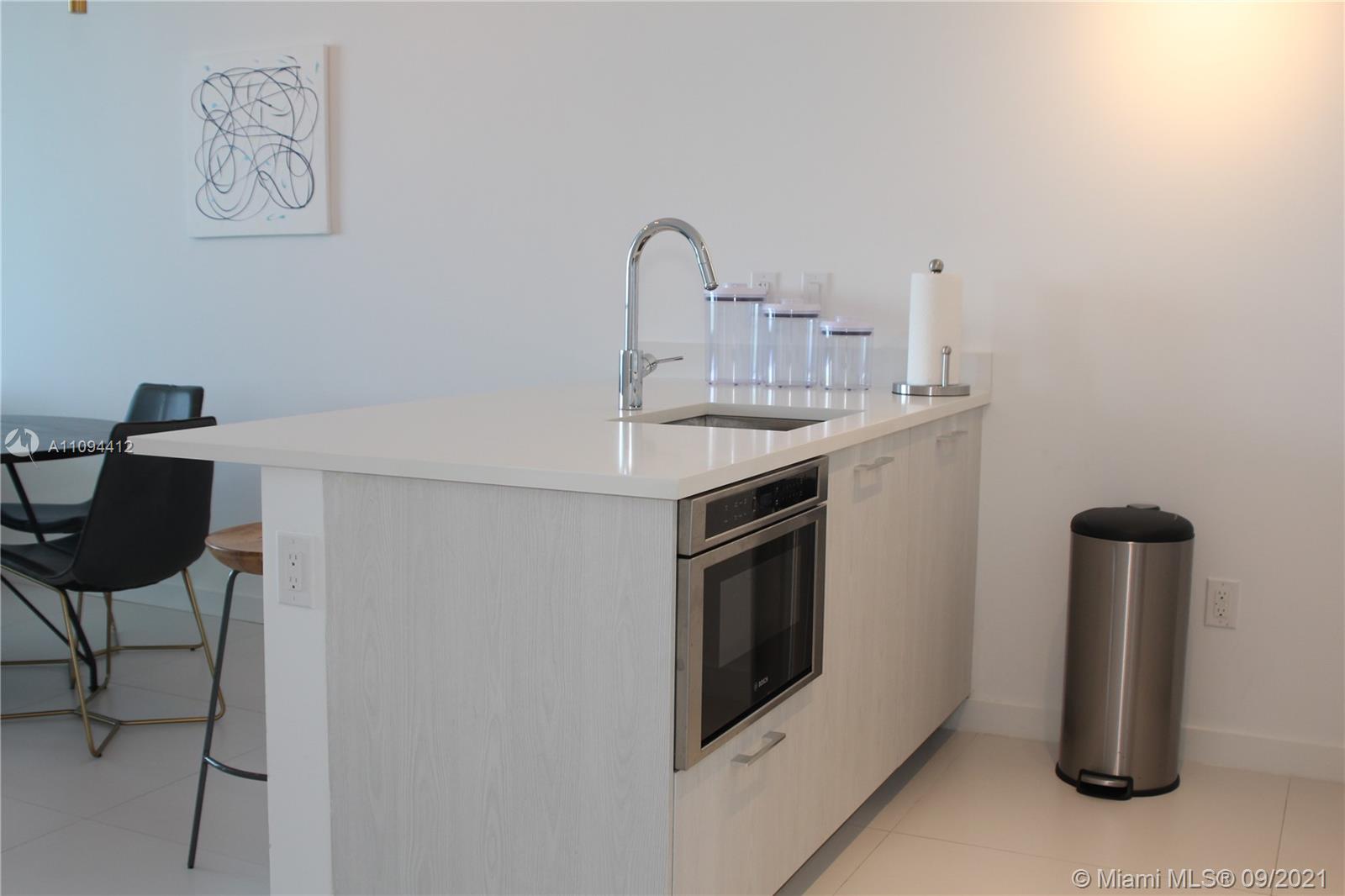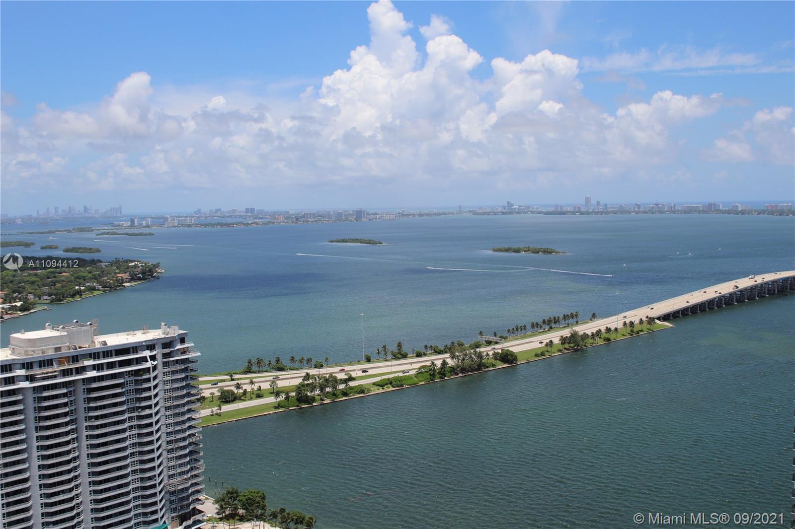 Priced to sell, unit with direct views to the Bay and the Ocean. Beautiful finishes, Italian porcelain tile throughout, Italkraft kitchen cabinets, BOSCH appliances, excellent layout, King size bed in the bedroom, ample terrace. Building features incredible designer finishes by renown Karim Rashid including: tennis court, pool, cabanas, BBQ grills, lounge beds, spa, sauna, treatment rooms, state-of-the-art fitness center, multimedia room, billiards, kids room, club room and STUNNING 46th floor pool deck and hot spa with amazing views. Unit rented until December 2021 at $2250 per month. Tenant could move out with 45 day notice.