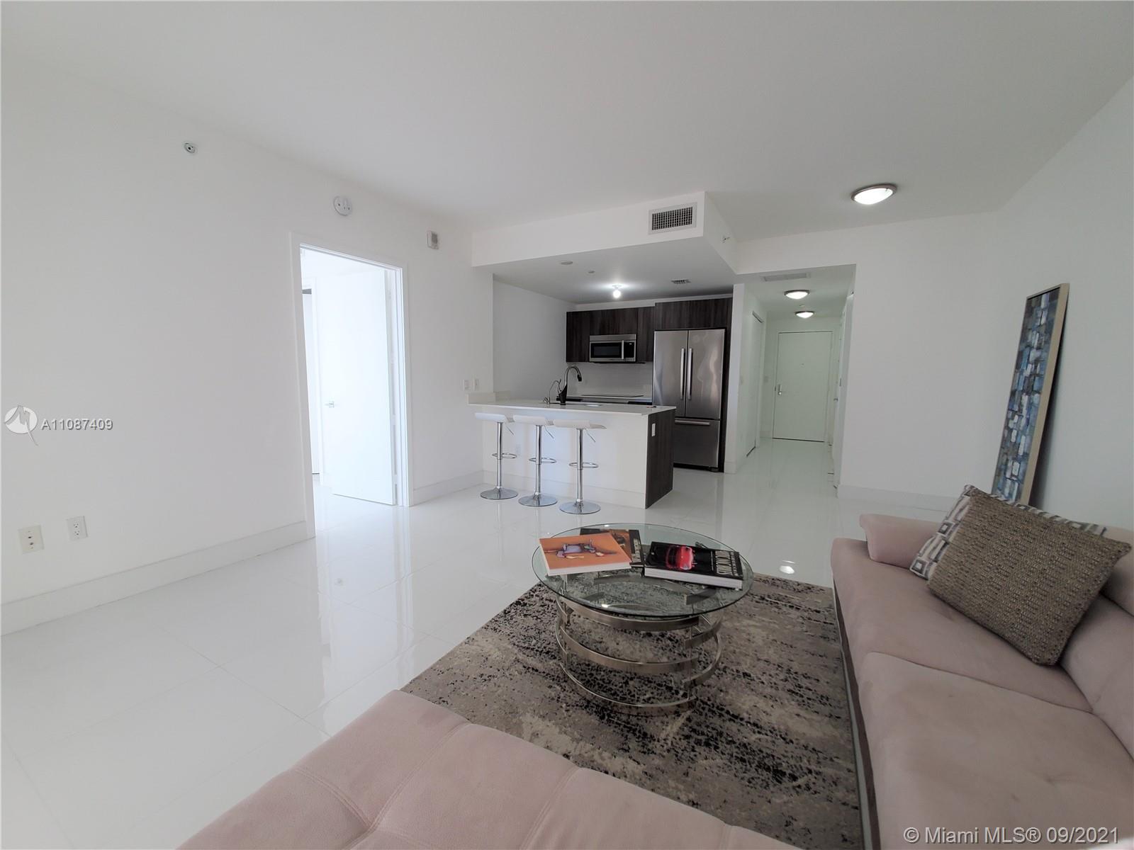 ARIA ON THE BAY High-rise 41st floor, great opportunity 1 bed/1bath+1.5bath and a big balcony sharing bedroom and living room with a spectacular ocean and city view. Washer & dryer in unit, 1 car garage & valet parking. A five star-resort style amenities designed by Arquitectonica include sunrise/sunset pool, BBQ, spa, sauna, steam room, business center w/library, fitness center, yoga, movie theater, resident's lounge w/private party room. Conveniently located close to the beaches, Wynwood, the Design District, Brickell, it won't last for this price!!!.- Pease check broker remarks ONLY INVESTORS, unit is rented.