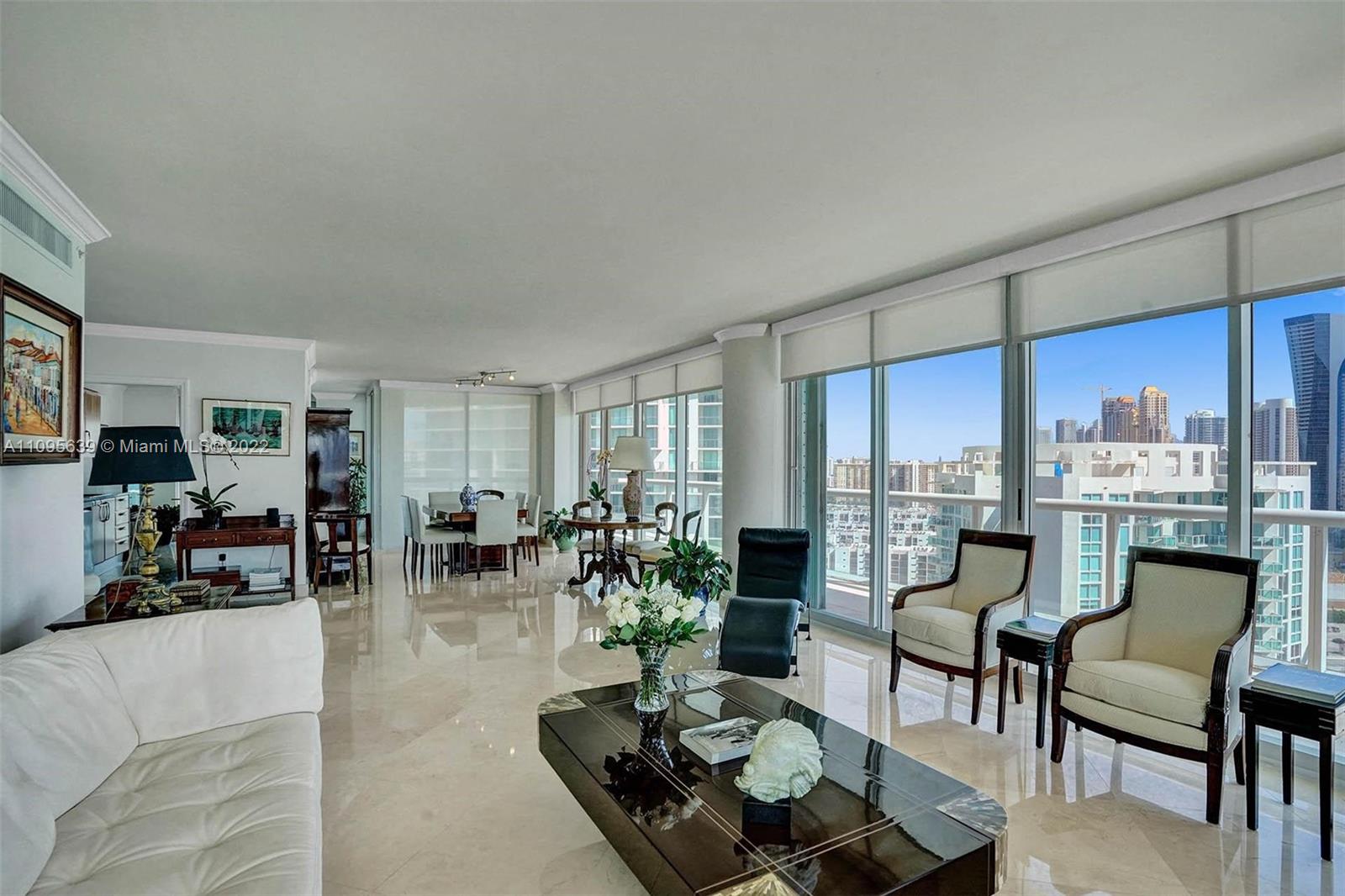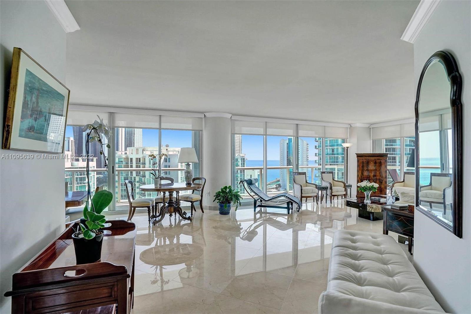 This special corner property is in the sought out area of Sunny Isles Beach. It has breathtaking views of the Ocean, Intracoastal + city. This residence boasts 2,144 indoor SF and a large wraparound terrace. 3 full bedrooms and 3 bathrooms. Some of the finest finishes include redone kitchen + new appliances, marble floors throughout living areas and brand new light grey wood floors in bedrooms, custom closets. Enjoy the unsurpassed lifestyle of Oceania with clubhouse, cafe, pools, beach service, multiple restaurants inside and out, gym, salon. A boater's dream on private island with a marina and so much more.