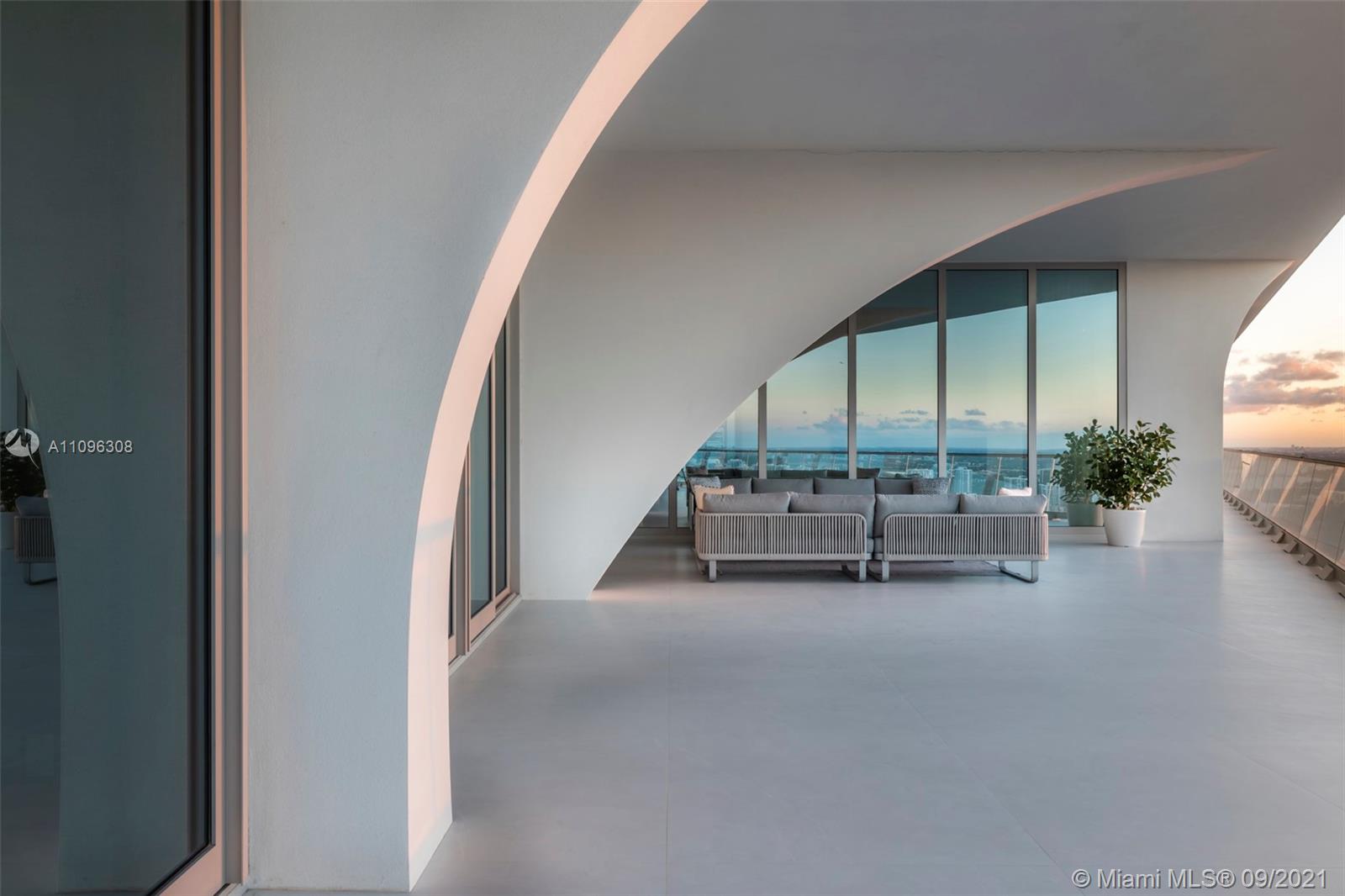 One-of-a-kind two-story Signature Upper Penthouse with 360° striking views. 12ft ceilings throughout and over 7,500 of a wrap-around balcony and an oversized jacuzzi overlooking the ocean. Stunningly furnished and ready to move in with just your toothbrush! Up to 7 bedrooms/9.5 bath, 2 level master bedroom with private gym, sauna, steam + jacuzzi bath overlooking downtown Miami, the ocean + intracoastal. A palace in the sky!