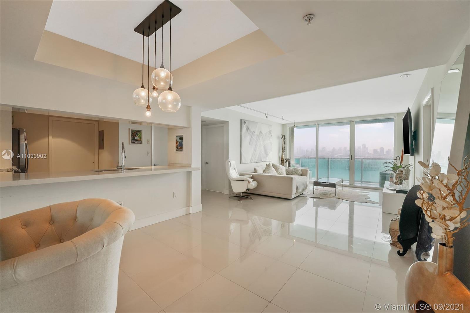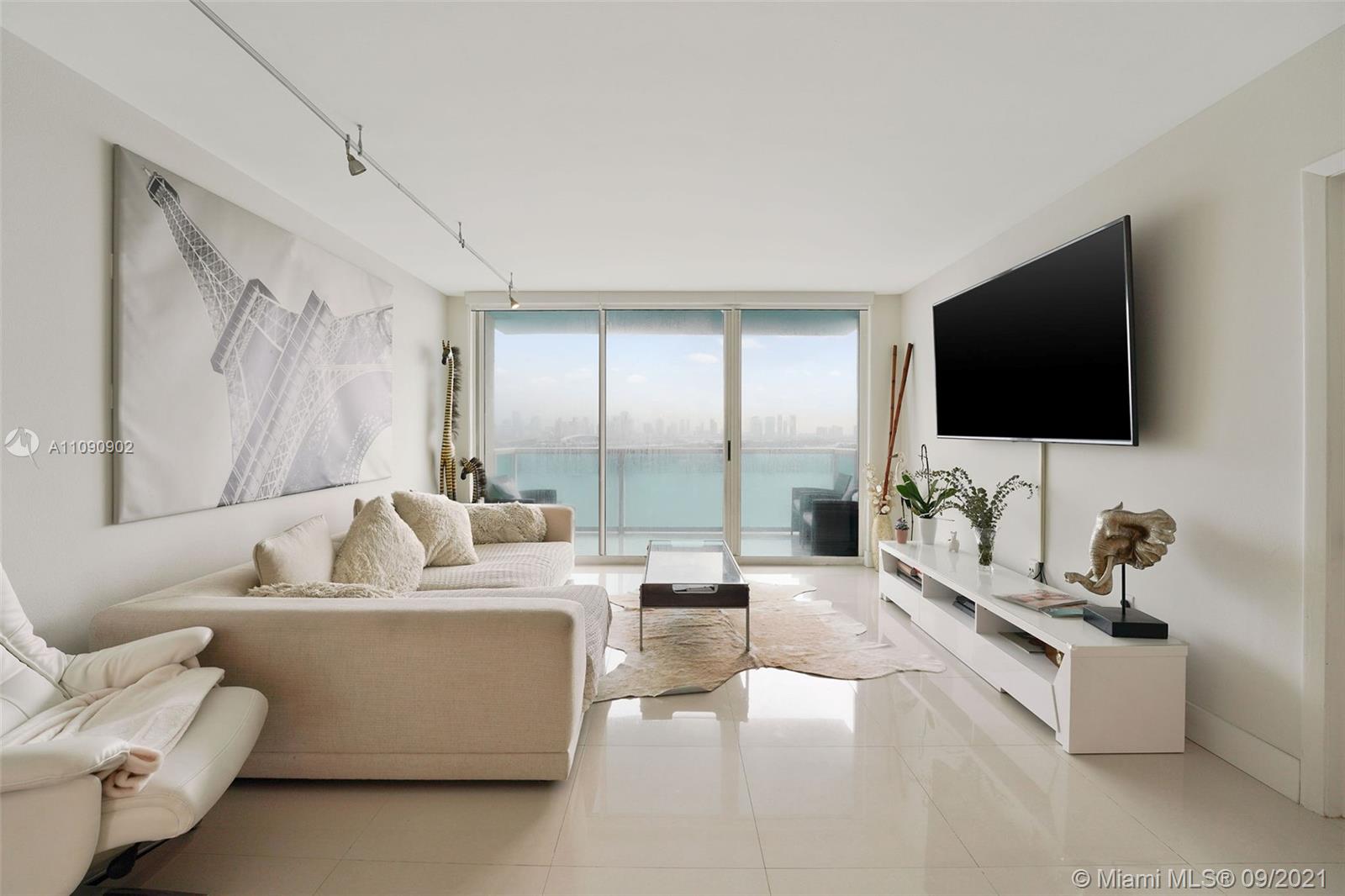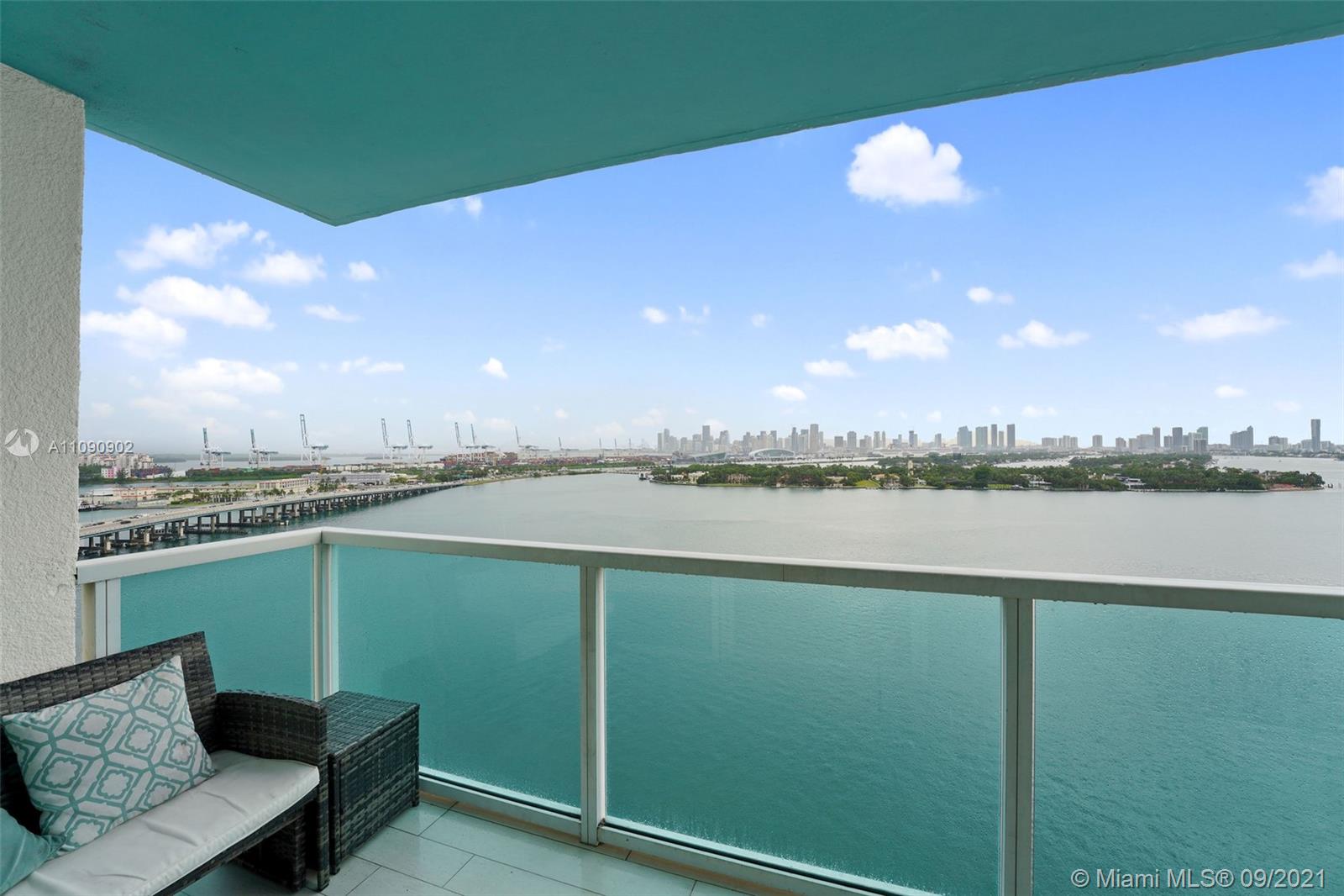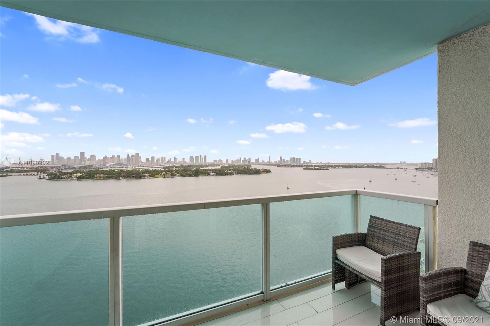 This renovated 2 bedroom, 2 bath residence at The Floridian features direct bay views from each room. Enjoy stunning west facing bay views of the Miami Skyline from your spacious (1,225 Sqft) home. Features include designer ceramic floors, an open kitchen with ample storage, full size washer/dryer, dining space, custom closets, balcony with tiled flooring and assigned covered parking. The Floridian is a luxury condo with resort-style amenities, including 2 bay front pools, fully equipped gym, salon, market, poolside dining, tennis court, valet & security. Live in an ideal location close to many restaurants, shops and grocery stores with easy access to major roads. **New park across the street coming soon**