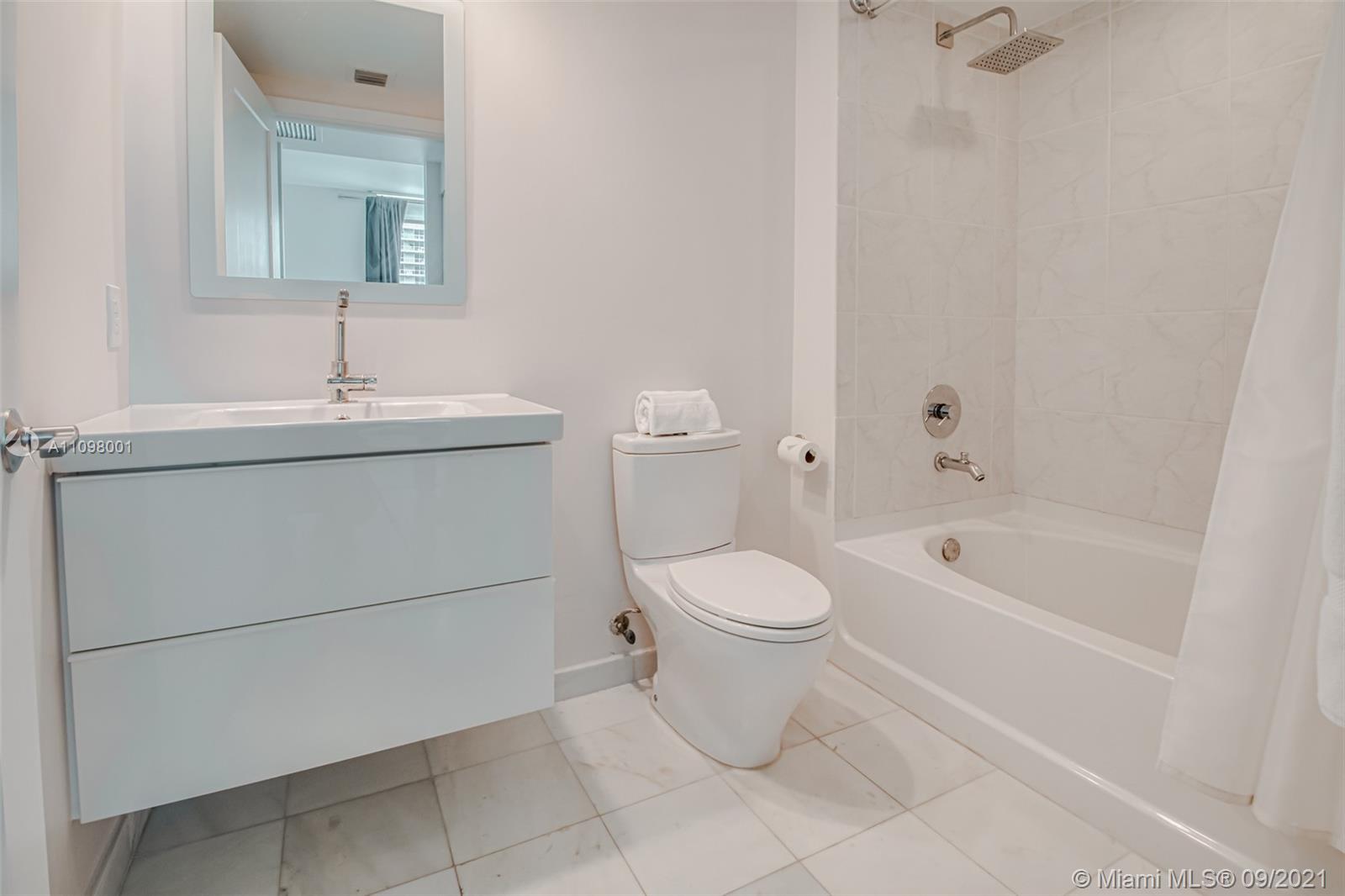 Live limitlessly in this delightful 34th floor unit at The Plaza overlooking Biscayne Bay. This classic 2 bedroom layout is perfect for first-time buyers looking for an affordable spot in the heart of Brickell. The fully renovated white kitchen with new SS appliances offers an open concept living which is perfect for entertaining guests. Each bedroom has an on-suite bathroom that has been tastefully renovated as well. The South-facing balcony gives you the best of both worlds: breathtaking water views and the dazzling lights of Brickell City Living. Plus, you're just an elevator ride away from all the action: get your exercise in by the bay just across the street or visit one of the hundreds of restaurants within walking distance to Brickell & Downtown.