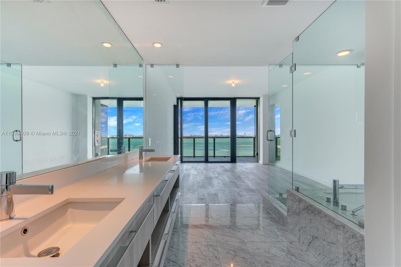Unparalleled direct unobstructed views, amenities and luxury abound at the Paraiso District's premiere address, One Paraiso. 3Bedroom + Den, 3.5Bath unit with 350SF of terrace for outdoor living. High floor unit w/only 6 units per floor give an exclusive boutique condo feel. Private elevator and foyer welcome you into a sprawling floor plan with white marble flooring throughout. Den space doubles as a media room/office or convertible to convenient guest space. Amenities are endless and complete the experience. Tennis courts, multiple pool lounge areas on multi levels, Spa with sauna/steam and massage services, resident lounges, and deluxe fitness center. Design District, Brickell, Midtown, Miami Beach, the airport all at your fingertips and just minutes away.