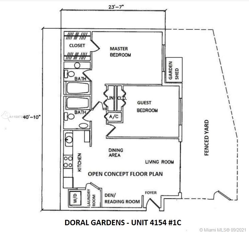 SPACIOUS 2bed/2bath, ground floor. Ideal opportunity for investors or small family. OPEN SPACE CONCEPT. Tile in main area and guest bedroom. Master bedroom has wood/laminate flooring with large walk-in closet and extra linen closet. Washer/dryer inside the unit. Energy star saving appliances and tankless water heater. New A/C (2021). New roof (2020). Fenced patio (shed included for addt'l storage). Accordion hurricane shutters (w/permits). Near Downtown Doral, Dolphin Mall, International Mall and Airport. Just a short walk to Doral City Place. Easy access to highways, shopping and Ranked A Doral Schools. Guard gate with card/fob access for residents. Community Pool. Take Advantage of this fantastic opportunity! TENANT OCCUPIED. Month-to-month ($1,500/month).