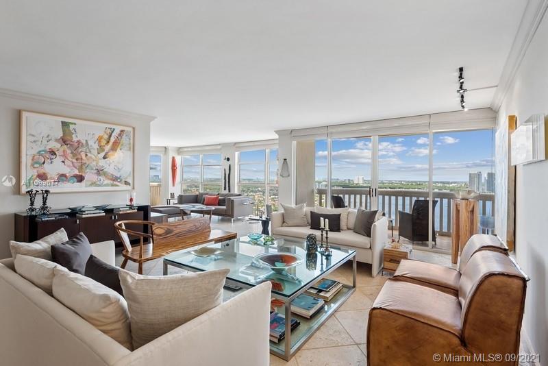 Looking for a spacious 3 BR/2.5BA condo, currently set up as a 2BR with den in Williams Island? This 1900sf art collector’s remodeled home with 180 degree sweeping water & skyline views might be your perfect choice. The main living areas & balconies feature Tuscan Saturnia Stone floors, smooth ceilings, track lighting & floor to ceiling views. The kitchen features a glass door refrigerator, a Fisher Paykel double drawer dishwasher & soft close drawers with pullouts. Owners may park their cars or use valet. This 84 acre paradise offers the consummate lifestyle featuring a 27,000sf spa with classes, an indoor swimming pool, a 16 court tennis & pickle ball club, 3 restaurants, a deli, a children’s playground, walking paths, an onsite marina & more. Tranquility in the heart of the city!