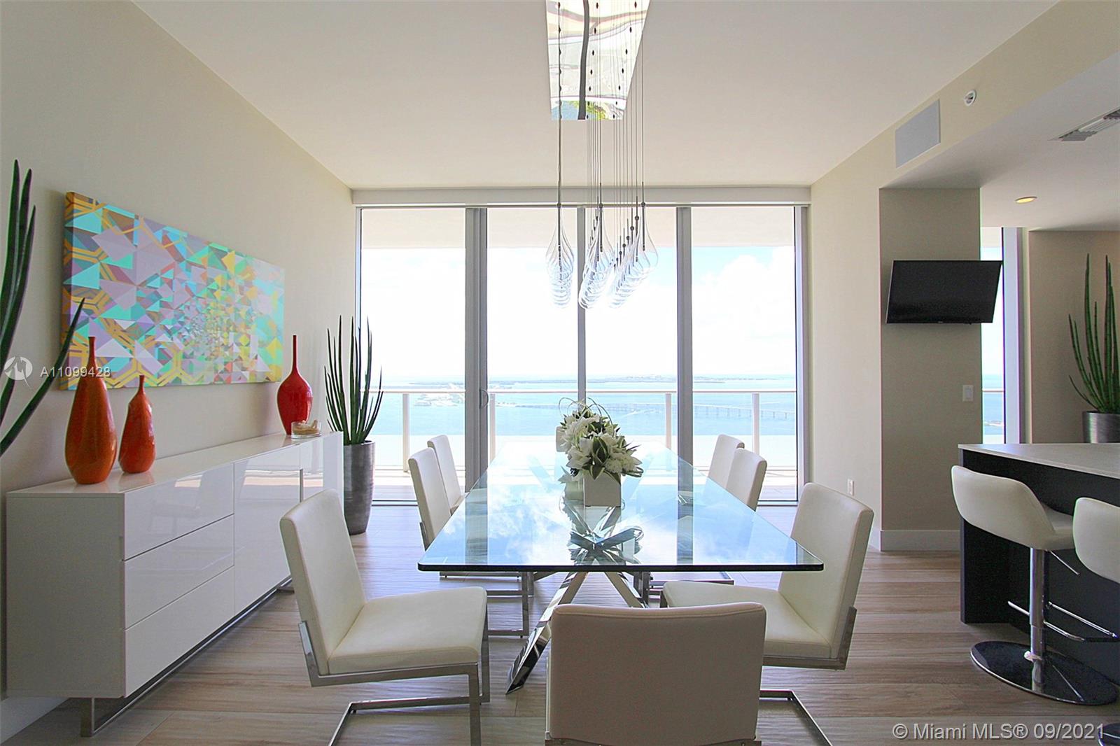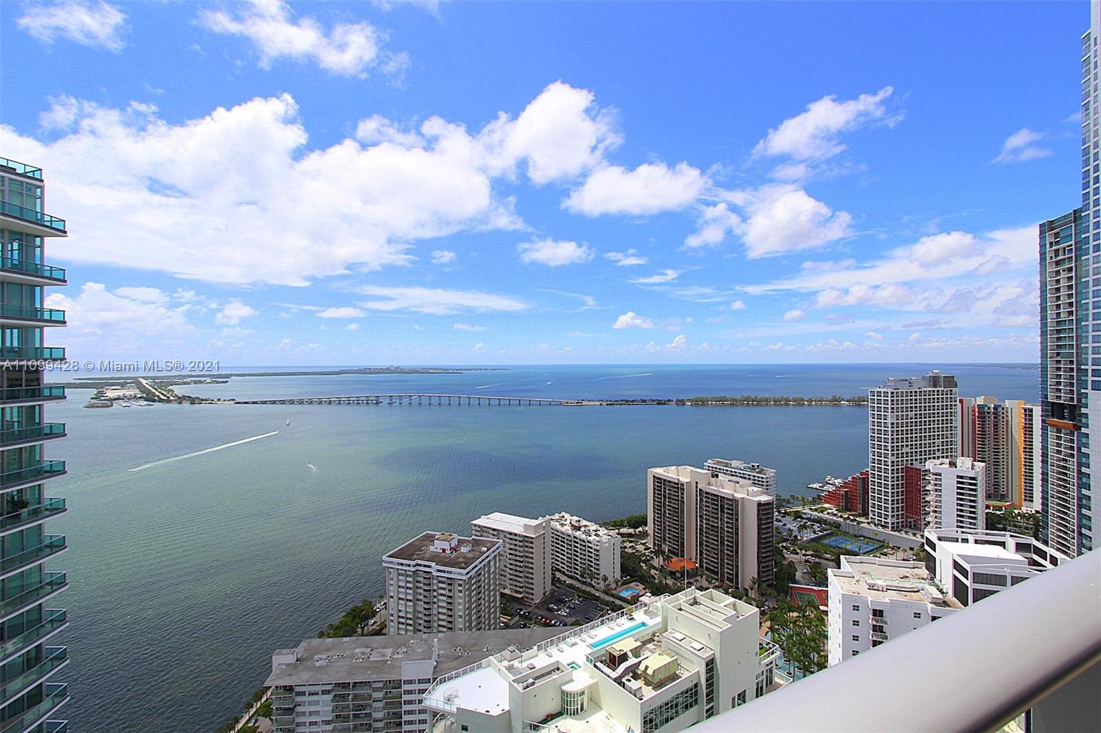 Sweeping & unobstructed water views from this 43rd floor penthouse located in the Brickell House Condo! Built in 2014, this magnificent high rise offers high end amenities which include 2 pools, gym, spa and valet service. Double main entry way foyer leads you to an ample and open main living area with floor to ceiling glass throughout. Water views can be had from almost all areas of this unit. Split floor plan provides a well-appointed master suite including enormous walk-in closet, master bathroom with soaking tub, separate shower and double sink vanity. Maids quarter next to laundry area. Balcony spans the complete length of unit with access points from all rooms. This is a one of a kind unit not to be missed!