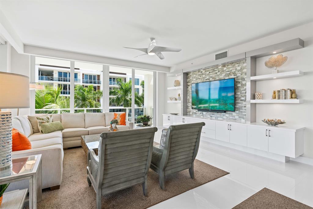 The most sought-after waterfront location in all of Palm Beach Gardens, Azure features spectacular no fixed bridge access to the Intracoastal Waterway with a full-service Loggerhead Marina on-site. As you exit your privately keyed elevator into this custom corner residence with 270-degree views of lush landscaping, water and marina views, you will find 32'' polished white porcelain flooring, impact windows and floor-to-ceiling sliding doors with ceiling heights soaring to 10 feet. This open great room plan includes custom cabinetry with quartz countertops throughout, Grohe plumbing fixtures, and top of the line Thermador appliances. Upgrades include a custom built-in entertainment center, motorized shades w/drapery pockets, wine refrigerator, induction cooktop, custom closet...