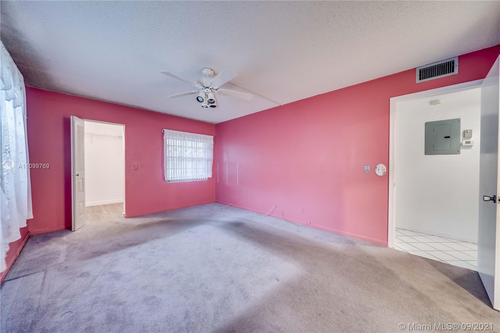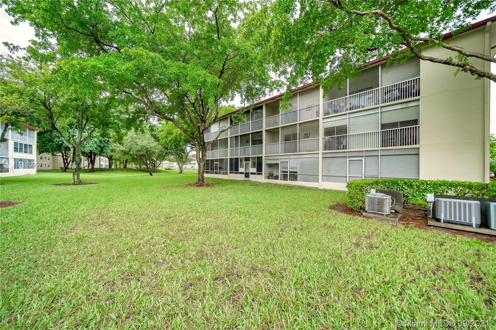 2 bedrooms/2 bathrooms corner unit located on the first floor with a beautiful garden view. Enjoy the view of the open green space while sitting on your screened balcony. Kitchen and bathroom cabinets are well kept and maintained. The corner condo is flooded with tons of natural light, a great layout and spacious rooms. Laundry is conveniently located on the same floor. Great investment opportunity. Resort Style 55+ community in Pembroke Pines with on-site amenities that include a pool, gym, movie theater, golfing, clubhouse, local shuttle service and so much more. Century Village is near the outdoor shops of Pembroke Gardens, I-75 and many shopping centers.