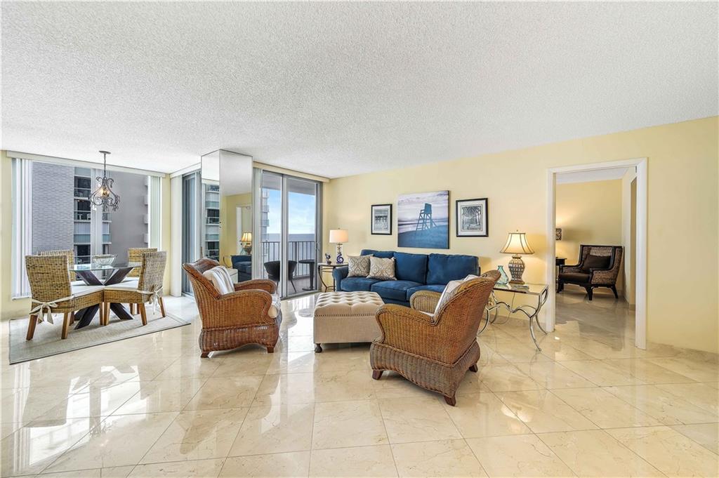 2 bedroom 2 baths unit with an ocean and pool view from every room. This unit has a split convenient floor plan, it is like having two master suites. All marble floors throughout the unit, kitchen and bathrooms remodeled. Laundry room with washer and dryer. Hurricane Impact Windows, balcony has accordion shutters, Plenty of guest parking. Heated pool, Jacuzzi, BBQ area, Billiards, TV room, lounge chairs on the sandy beach, Internet and basic cable is included . 24 hours security guard. Close to shops and restaurants. Come and Enjoy South Florida at its best