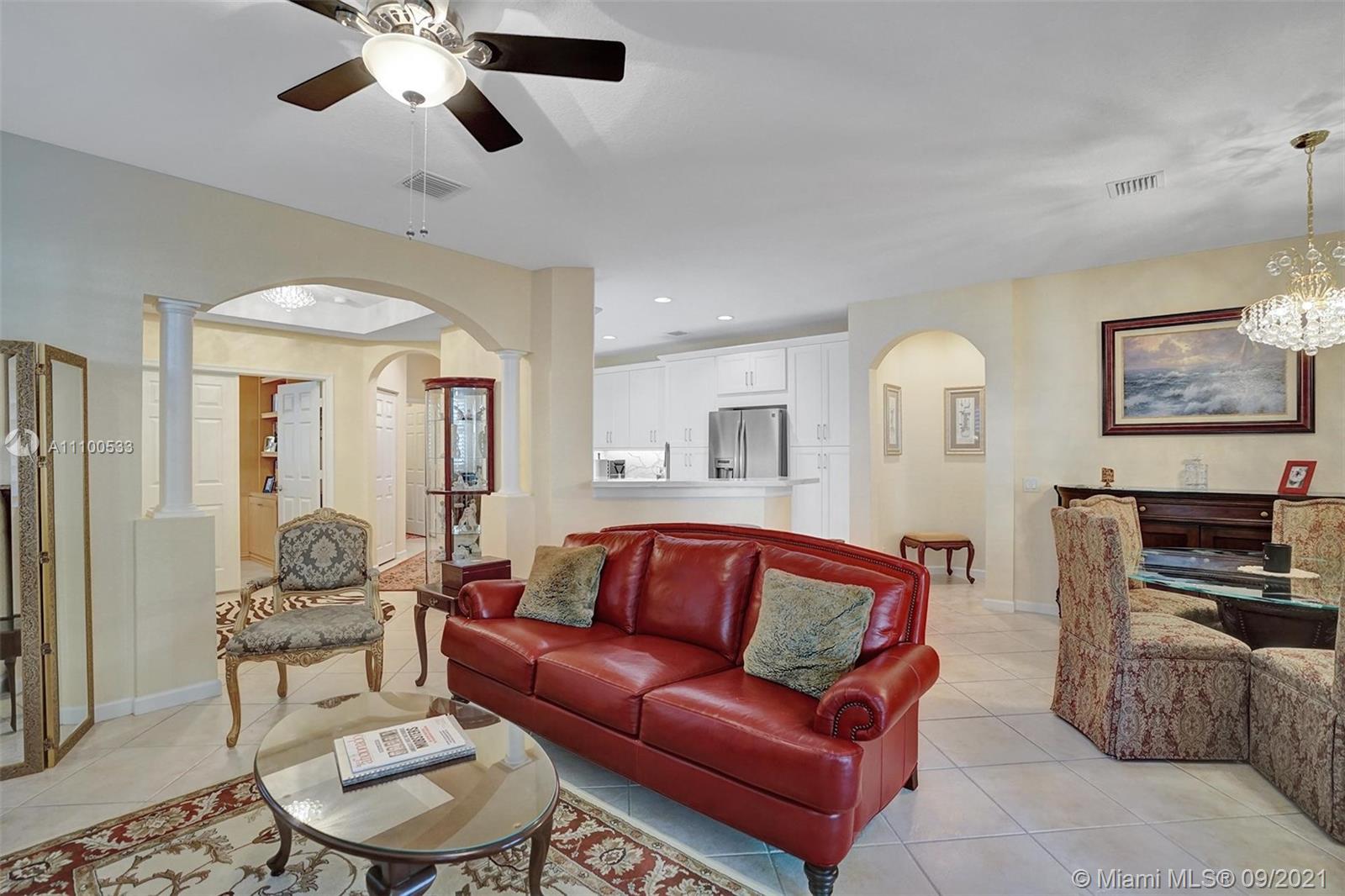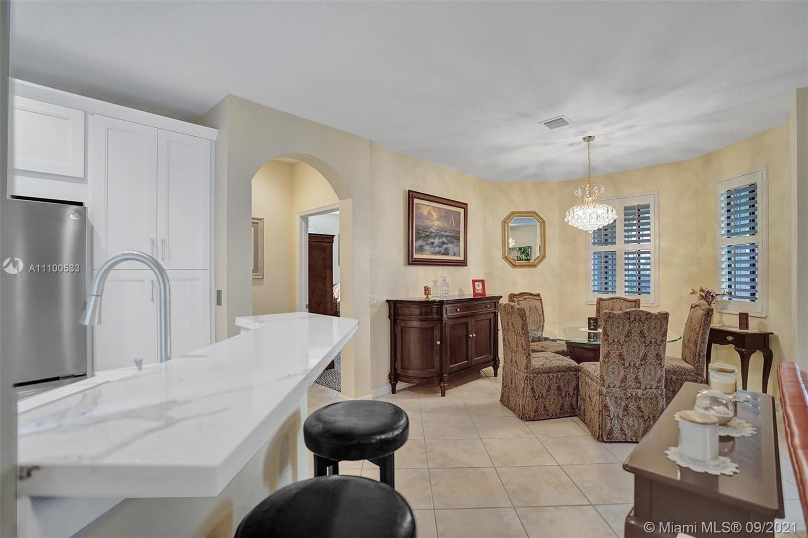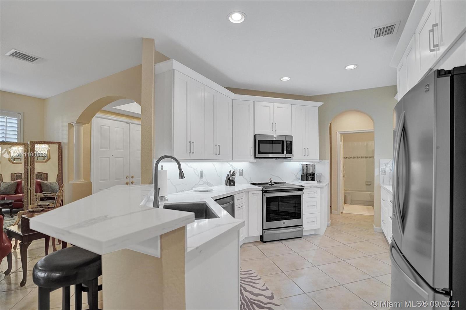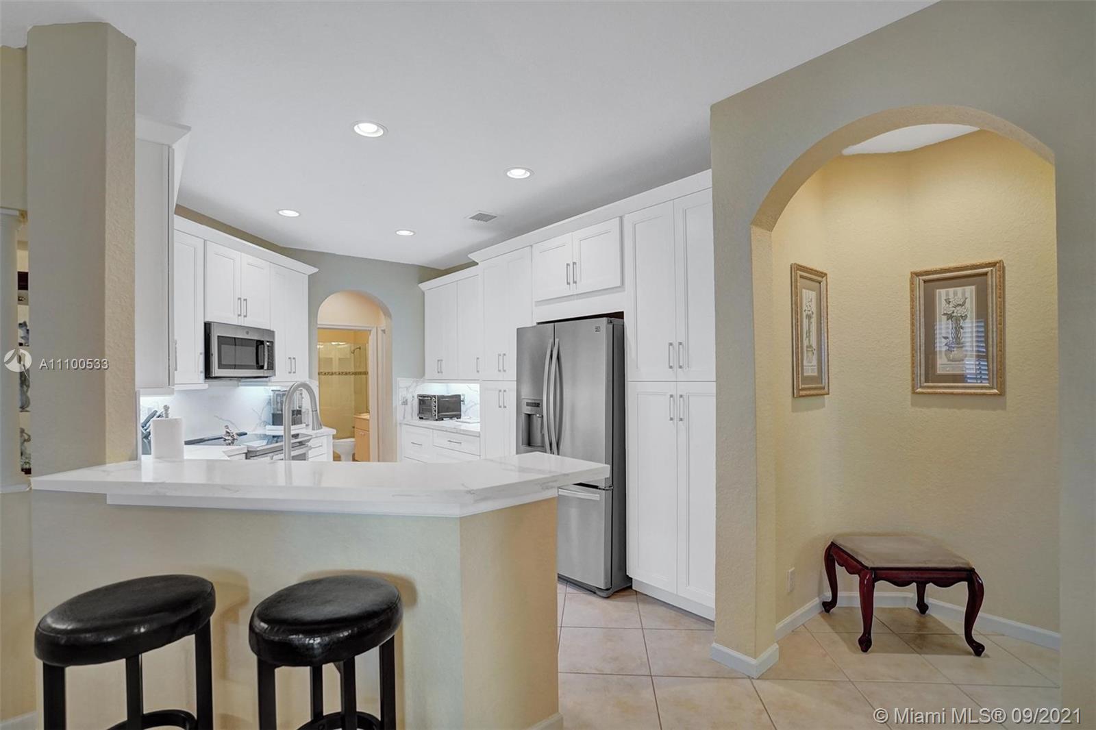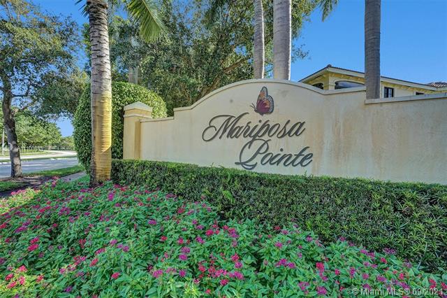 Amazing opportunity to own a 3 bedroom 2 bath condo including a 2 car garage centrally located in the Heart of Weston in Mariposa Pointe! Walking steps to Weston Town Center, Publix, Starbucks and restaurants! An all age community and completely gated. **IMMACULATE & REMODELED**. This is an eye Catcher! Tiled floors, Plantation shutters, new kitchen and appliances, newer a/c and hot water heater! The flowing floor plan of the Buckeye Model is a real winner! The screened patio with an additional extended courtyard makes this home a great place for outside entertaining or relaxing with views of lush landscaping! This unit is a rare find! Owner will need up to a 60 day post occupancy! Crystal chandeliers over dining room table and entrance excluded!