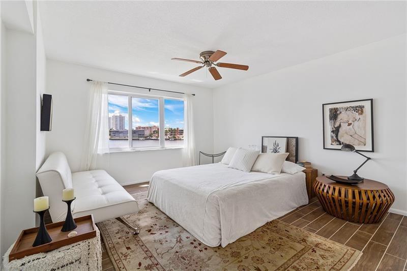 Welcome home, waterfront lovers! Gorgeous, remodeled, light-filled, southwest-facing unit boasting modern, Scandinavian charm. This 2-bd, 2-bath unit has a wrap-around balcony with SPECTACULAR waterfront views. Recently updated with new AC units, recessed lighting, porcelain floors, impact windows in the bedrooms, and quartz countertops. Free laundry is conveniently located across the hall. This building has great outdoor space with a communal pool, barbecues, and expansive outdoor entertainment space. Only a mile away from Hallandale Beach and within close proximity to the many shops and restaurants in Gulfstream Park!