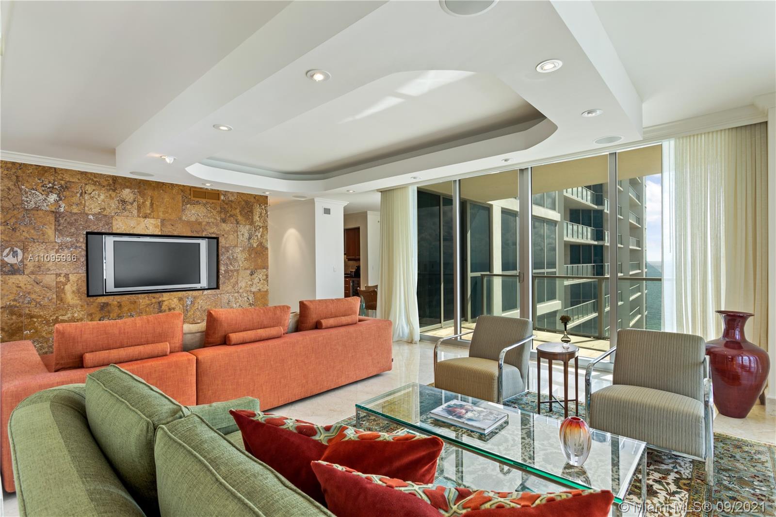 Spectacular oceanfront unit in Ocean Palms with two big balconies for Southeast and Southwest side views. 3 bedrooms / 3 full baths, Private elevator entrance opens to double door entry. Floor to ceiling windows throughout with window treatment. Elegant marble flooring and spacious bedrooms. Master bedroom with his and hes walk in closet. Master bath with 2 sinks, Jacuzzi tub, private space for the shower and toilet/bidet. Fully automated unit with sound system, light and curtains. Gourmet kitchen with Subzero refrigerator & Wine cooler and Miele Coffee machine. Laundry room with tank. Storage. Building offers resort style amenities to enjoy. Outdoor bbq area, pool deck with spa and beach access, movie theatre, fitness center, tennis, basketball, billiards, clubroom, 24h security, valet.