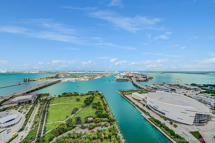 Rarely available 04' Line at the prestigious 900 Biscayne Bay featuring expansive 44th floor unobstructed views of the Atlantic ocean, Biscayne bay and skyline views of Downtown and South Beach. Open layout featuring 1 Bedroom + Den & (2) full bathrooms, newly installed A/C, custom closets and Euro inspired kitchen with large marble center island and Sub Zero & Miele appliances. Premier "Park West" location in Downtown Miami positioned next door to Zaha Hadid's 1000 Museum, the future Miami World Center and walking distance to the Miami Heat Arena, Perez Art Museum and the Performing Arts Center. Truly a special view waking up to the sunrise and watching the cruise ships leaving the Port of Miami and one of the only buildings with protected water views having Park West directly in front!