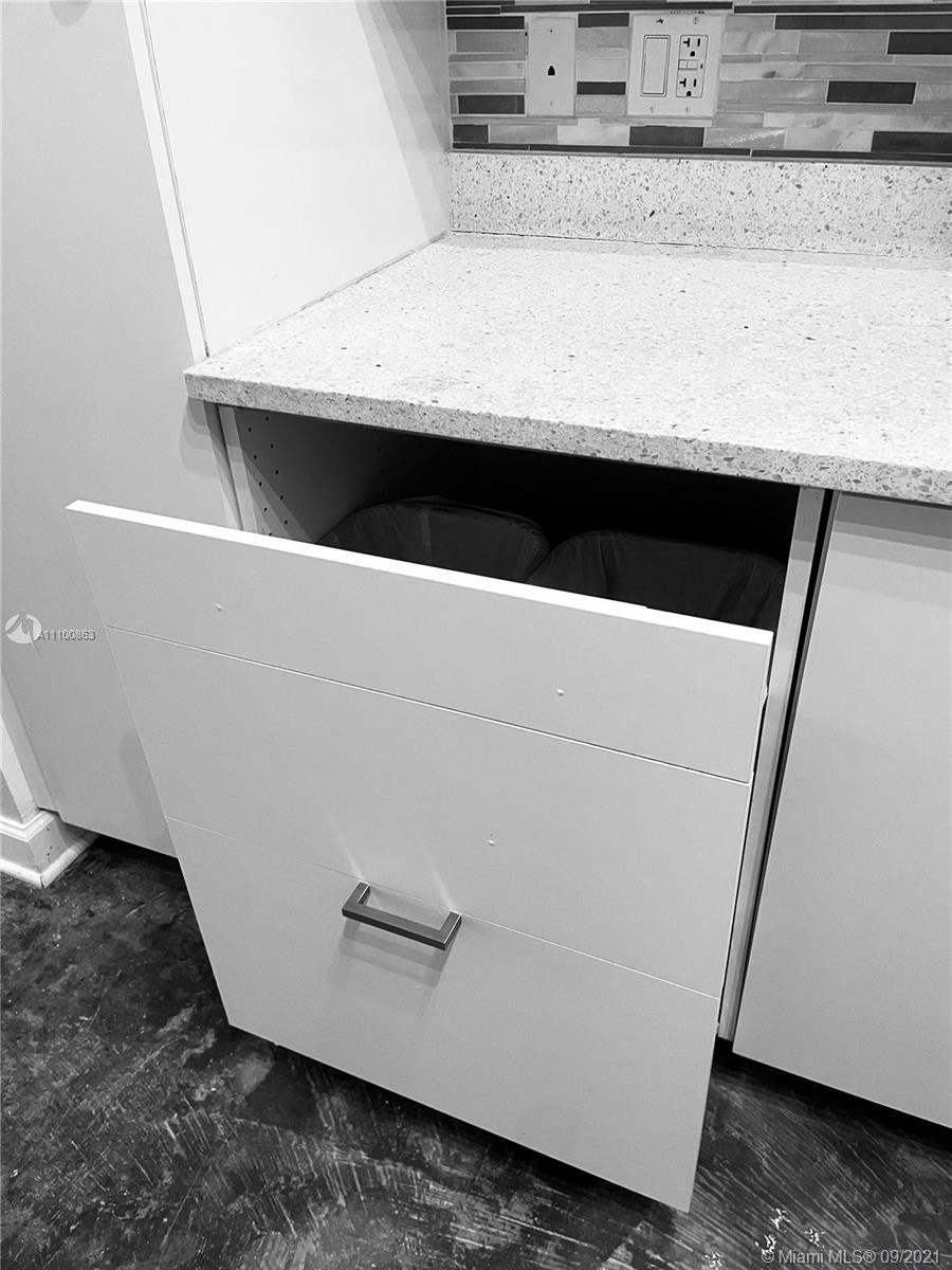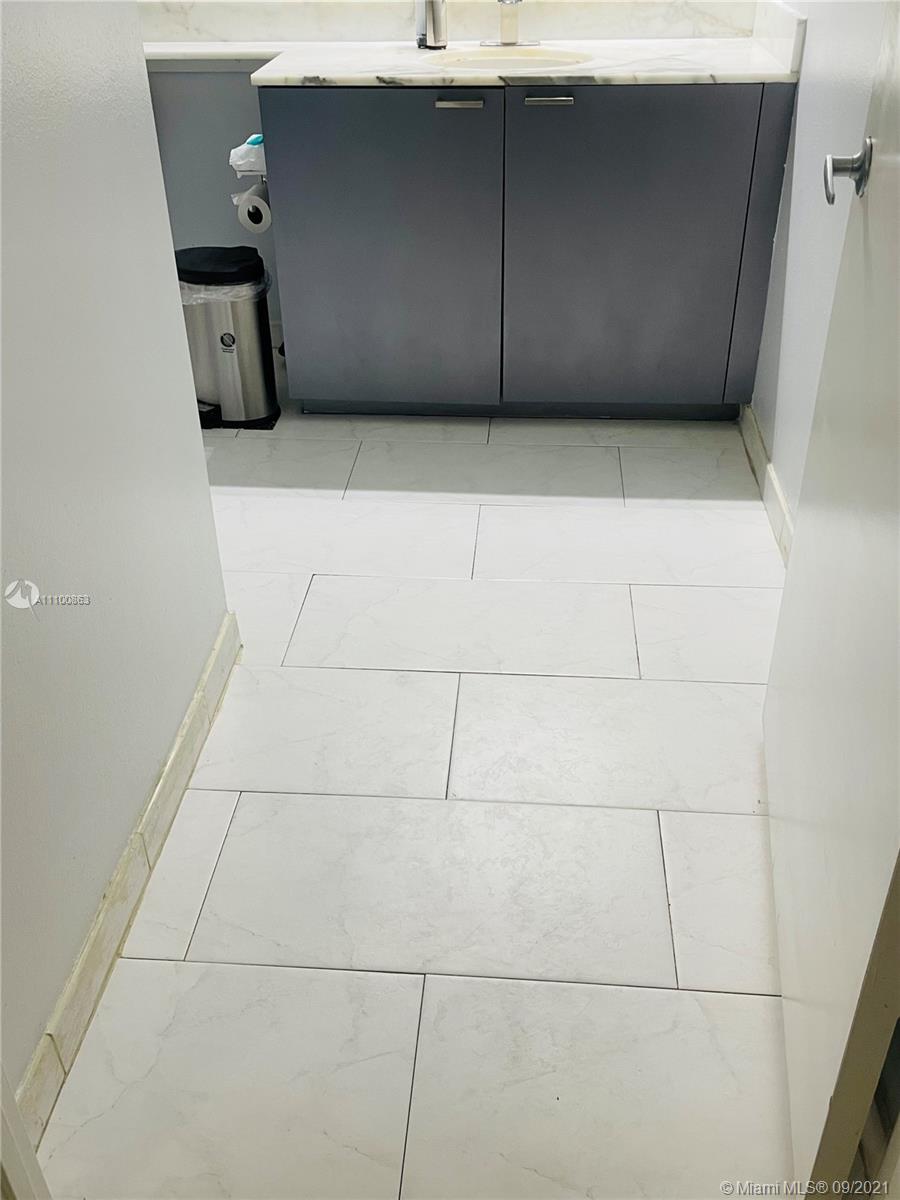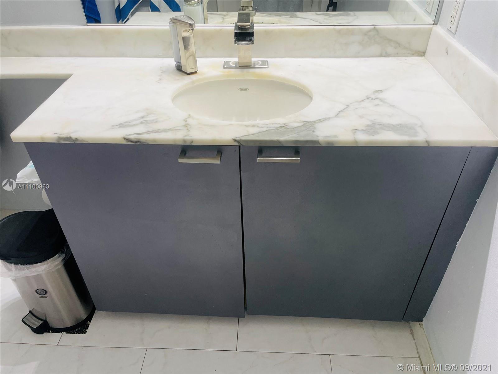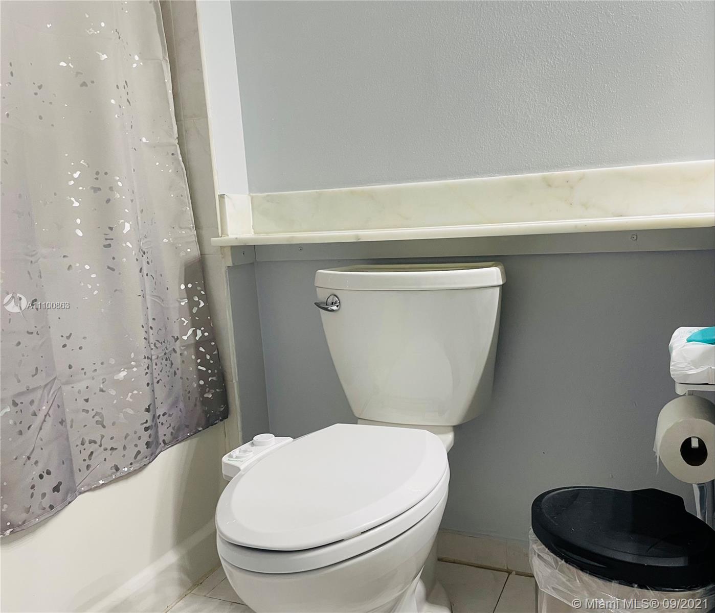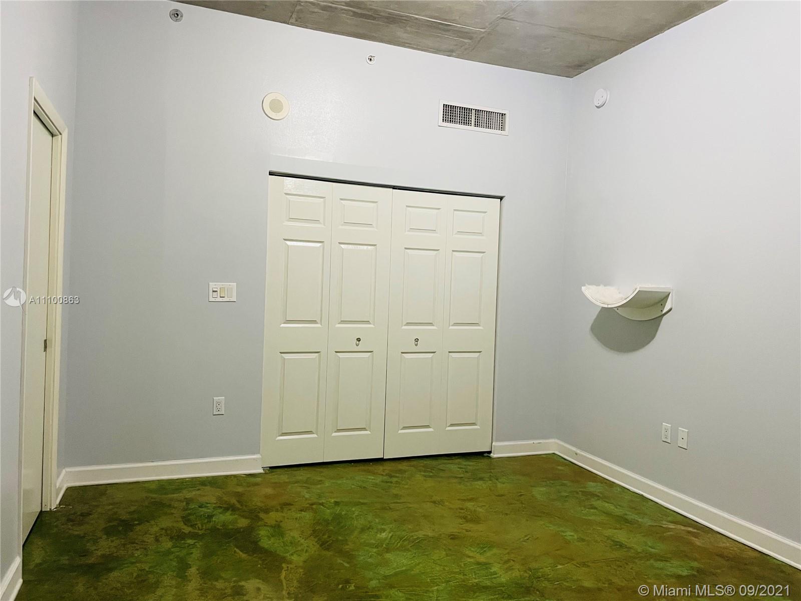 Beautifully updated and well-kept modern unit on the 8th floor. This one bedroom and one bathroom unit offers: concrete and tile floors, freshly painted walls; new air conditioner, smart Ecobee thermostat with Alexa; new smart LG washer and dryer; a clean white, silver: grey backsplash, trash cabinet; new kitchen and bathroom faucets; newly installed toilet; new dimmable bathroom lighting. The bedroom was recently enclosed with a full partition wall and door for privacy and total darkness to sleep, including a motorized shade. The bedroom closet has ELFA organizers and recently installed doors. The bedroom and living room include smart Roku TVs and Philips Hue lighting. Hurricane impact door and window. Bonus: balcony doggy door. The balcony is covered in beautiful, faux green grass.