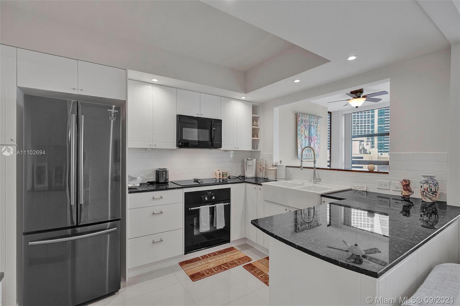 Wow, Wow Wow! Wide intercoastal waterway views from the panorama floor to ceiling windows in every room in this AMAZING totally rehabbed apartment. Super sleek ultra modern finishes abound in this fantastic unit throughout. If you're looking for an open concept space this one's for you! This gourmet, open-kitchen features a serve-through, so you can see the water from the center of the kitchen, as well as a recently installed Samsung Fridge, 42' cabinets with tons of storage, farmhouse style sink & upgraded fixtures, & beautiful granite countertops. Sleek tile flooring throughout the unit. Large master bedroom with huge walk in closet. 2 security entries with manned staff, tennis courts, library, pool. Close to tons of dining, points of interest, & a short bike ride from the beach!