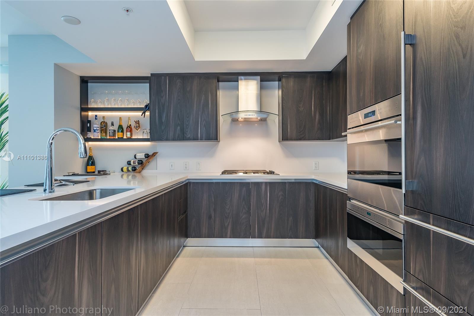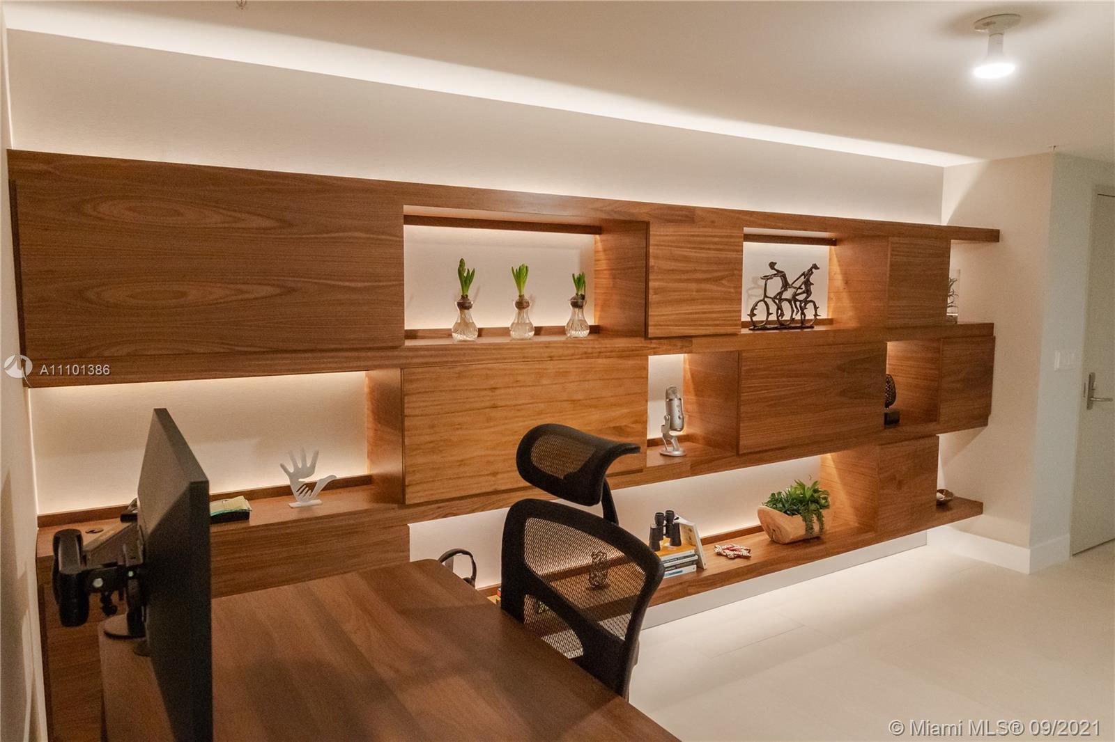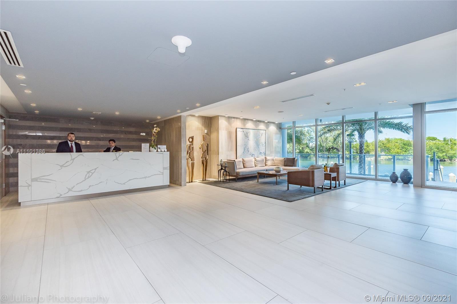 Designer ultra high end 2/2.5 + office area. Custom furniture & builtins in each room. 24x48 tile, impact windows, high ceilings & huge 70ft balcony with built in BBQ. Kitchen has Wolf wall ovens, gas range, quartz counters, Sub zero refrigerator, bar area & wine cooler. Custom wall treatments, walnut floating wall units, picture frame hidden TVS, SMART features- Phillips Hue smart lights turn on as enter room, Somos speaker system, Nest A/C, electric blinds & more. Decadent master suite has big walk in closet, master bath with 2 quartz vanities, large shower & separate tub. Other features: endless sunset views, laundry room w sink, 2 parking, kayak storage & storage unit. Resort style amenities include 7000sqft gym, spa, kitchen, pool, Jacuzzi, & docks on waterway. 2191sqft see floorplan.