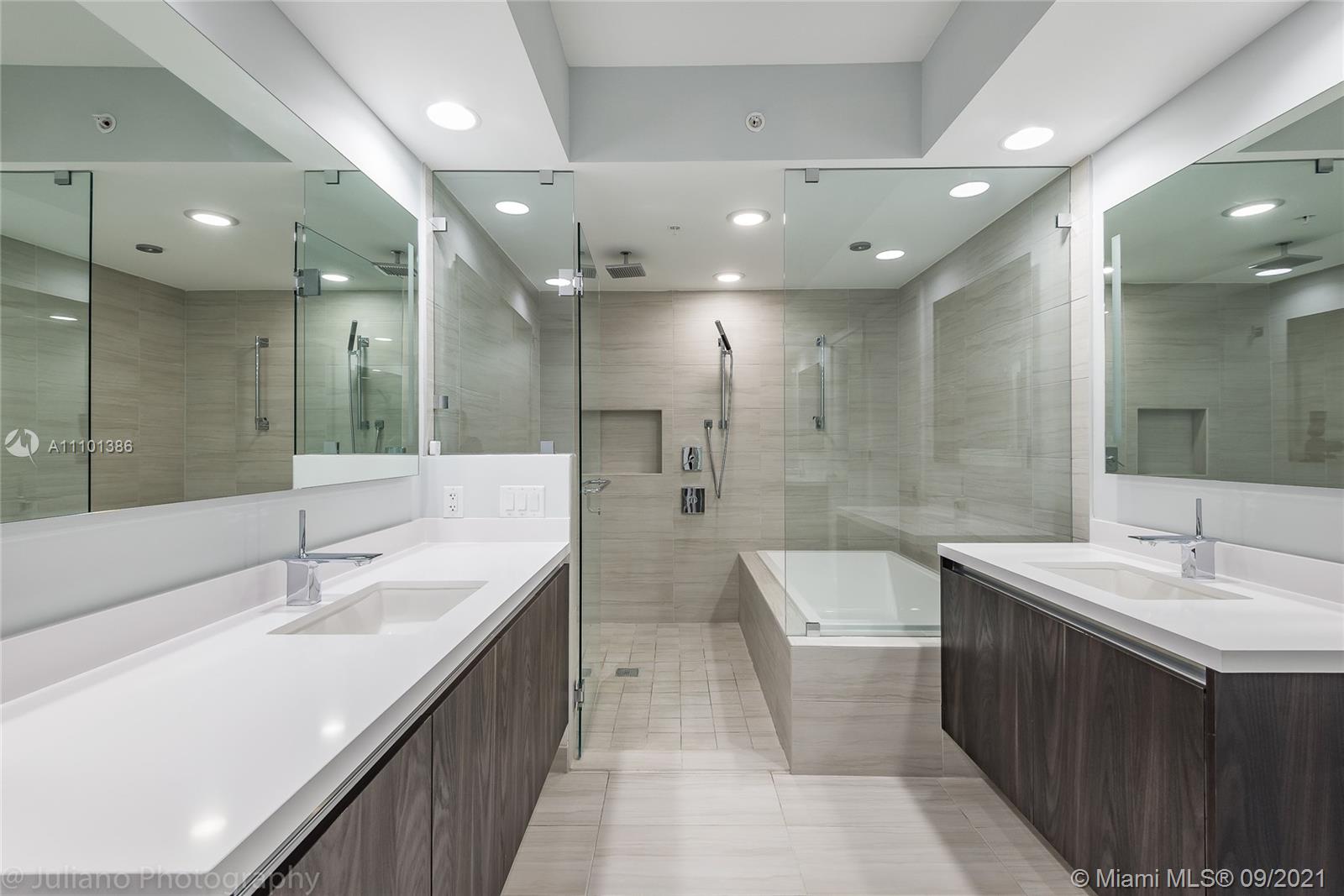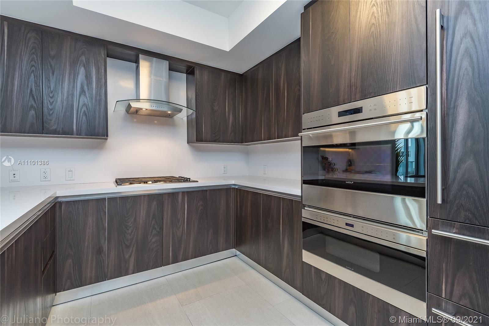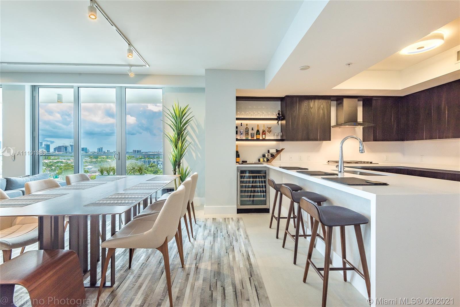 Designer ultra high end 2/2.5 + office area. Custom furniture & builtins in each room. 24x48 tile, impact windows, high ceilings & huge 70ft balcony with built in BBQ. Kitchen has Wolf wall ovens, gas range, quartz counters, Sub zero refrigerator, bar area & wine cooler. Custom wall treatments, walnut floating wall units, picture frame hidden TVS, SMART features- Phillips Hue smart lights turn on as enter room, Somos speaker system, Nest A/C, electric blinds & more. Decadent master suite has big walk in closet, master bath with 2 quartz vanities, large shower & separate tub. Other features: endless sunset views, laundry room w sink, 2 parking, kayak storage & storage unit. Resort style amenities include 7000sqft gym, spa, kitchen, pool, Jacuzzi, & docks on waterway. 2191sqft see floorplan.