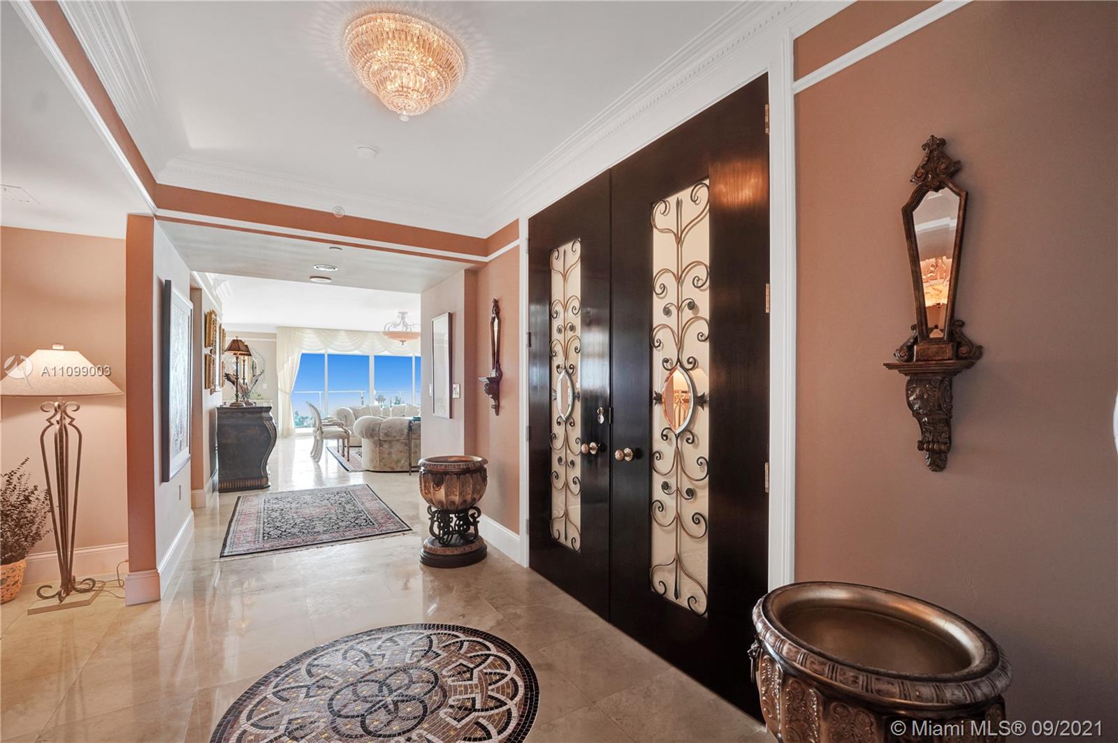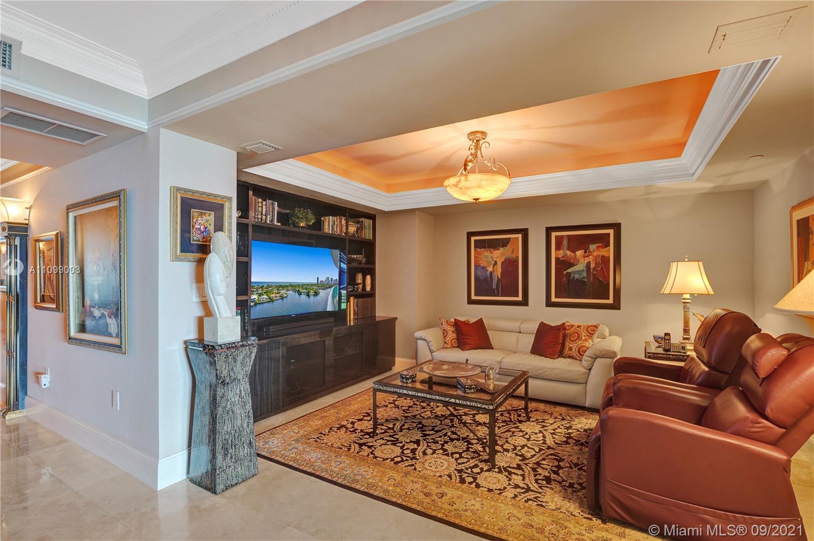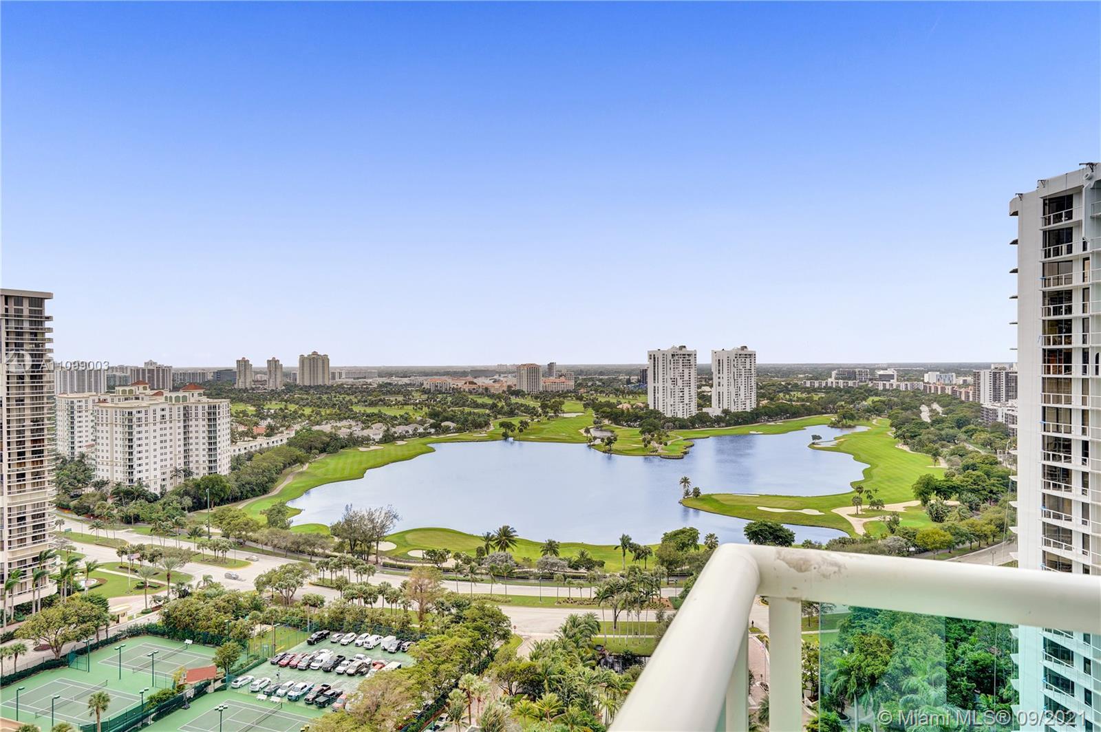 Luxury living, totally unobstructed views! Located in the heart of Aventura, Hamptons South has spectacular views; ocean & intracoastal in the front; golf course, lake and city in the back. This 2 bedroom +den/2.5 baths apartment has direct ocean & intracoastal views in the front and unobstructed golf course views in the back. Spacious den could be office or family room. Built-in bar and wine cooler, motorized blinds, huge walk-in closets. Large laundry room. Private elevator. Infinity pool, movie theater with 100 seats, BBQ area, tennis courts, internet café, kids room. On site exclusive restaurant. Only 5 minutes to the beach. 3.5 mile bike and walking path across from the property. Easy to show. Call or text listing agent.