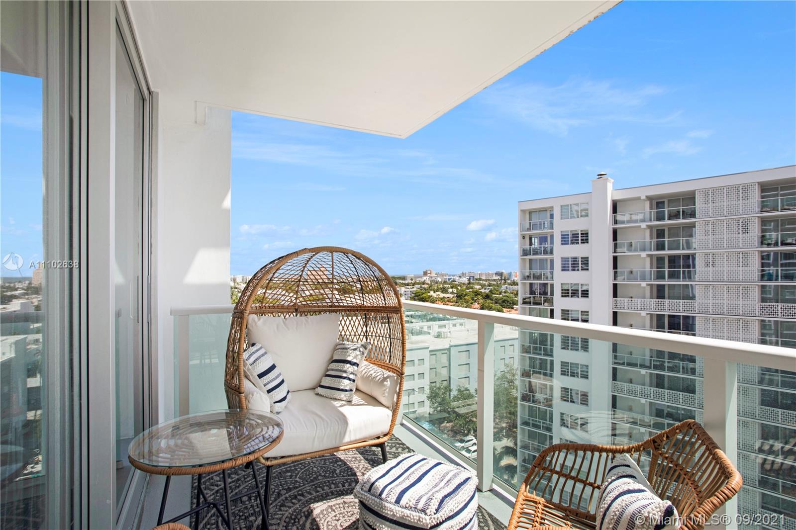 A bright 1 bedroom, 1.5 bathroom located on West Ave, with a view of the ocean, bay and skyline! Brand new electric curtains throughout this spacious corner unit, impact windows & doors, and beautiful slate flooring. Internet & cable included. Valet parking available for $65/month. The Mirador is a full service building with a large pool deck and a heated pool, jacuzzi, bbq area, sauna, convenience store, 24 hour security, spa, and hair salon!