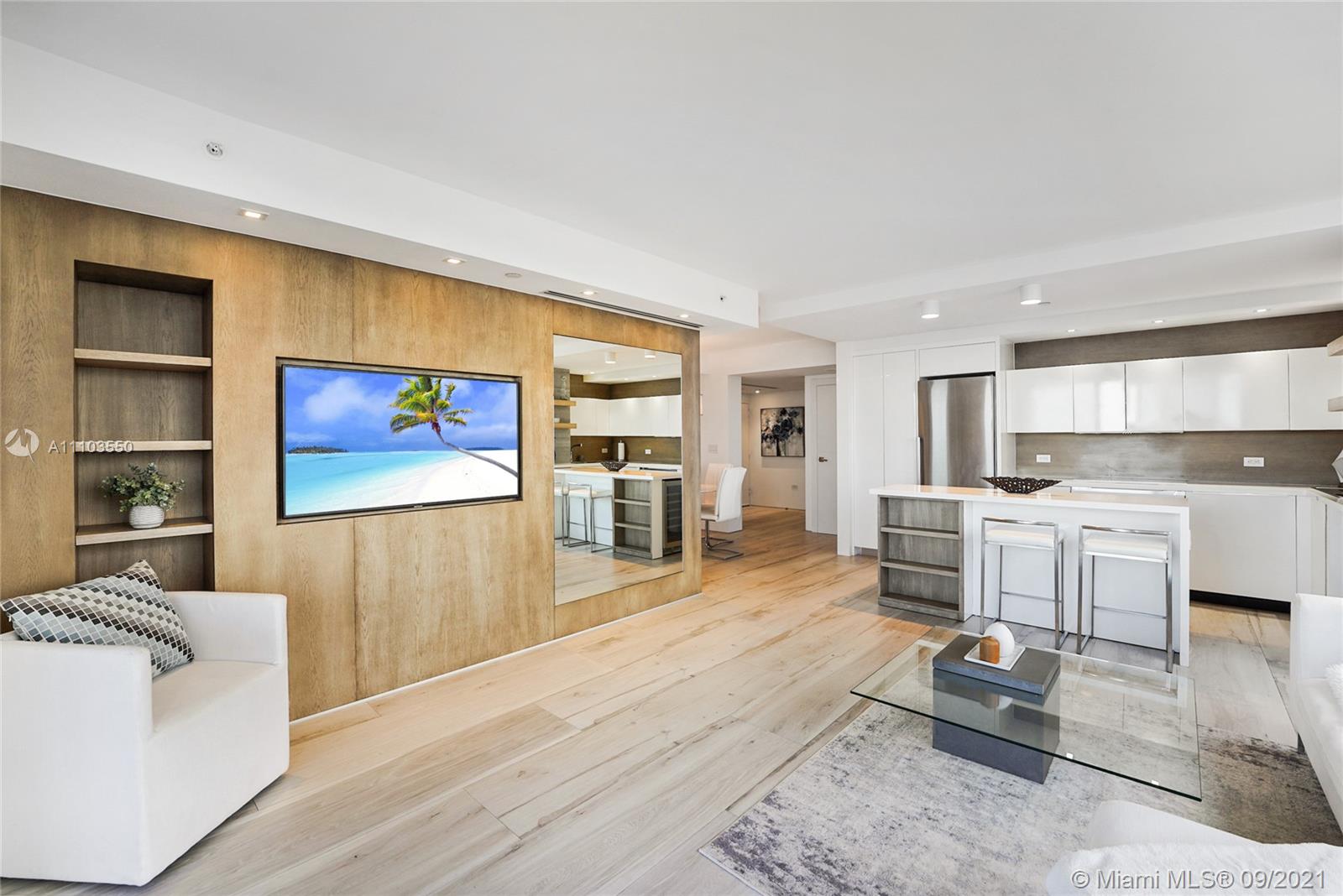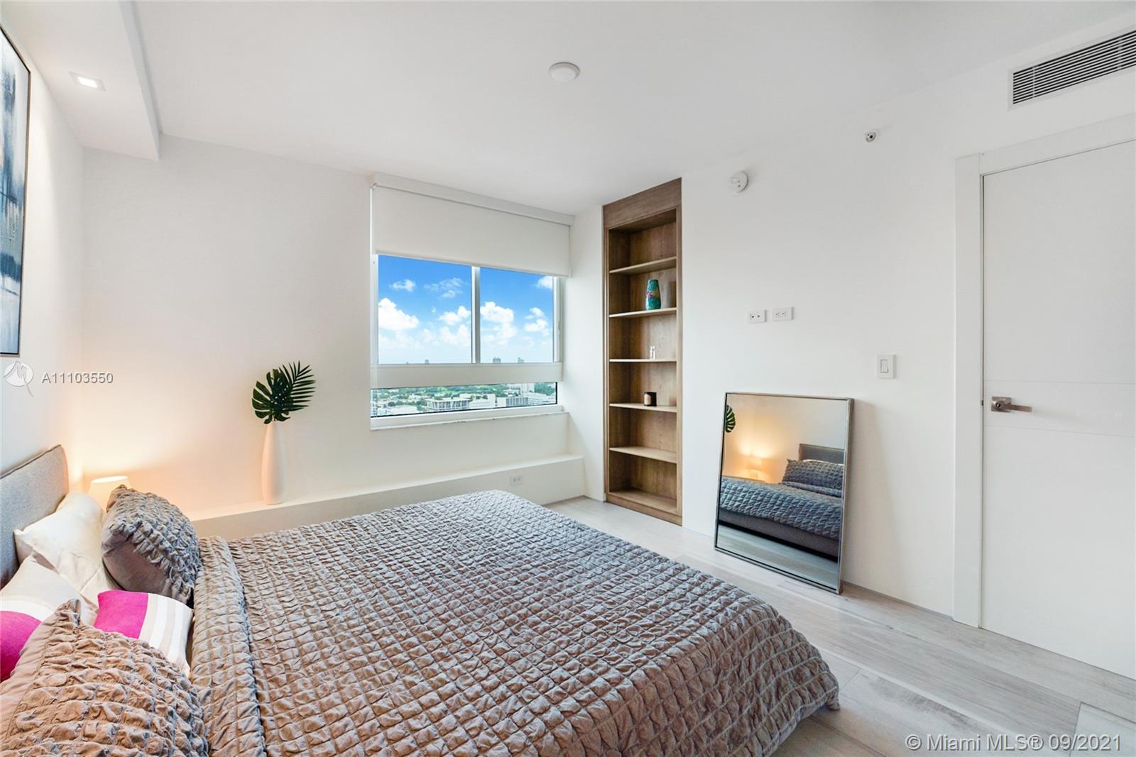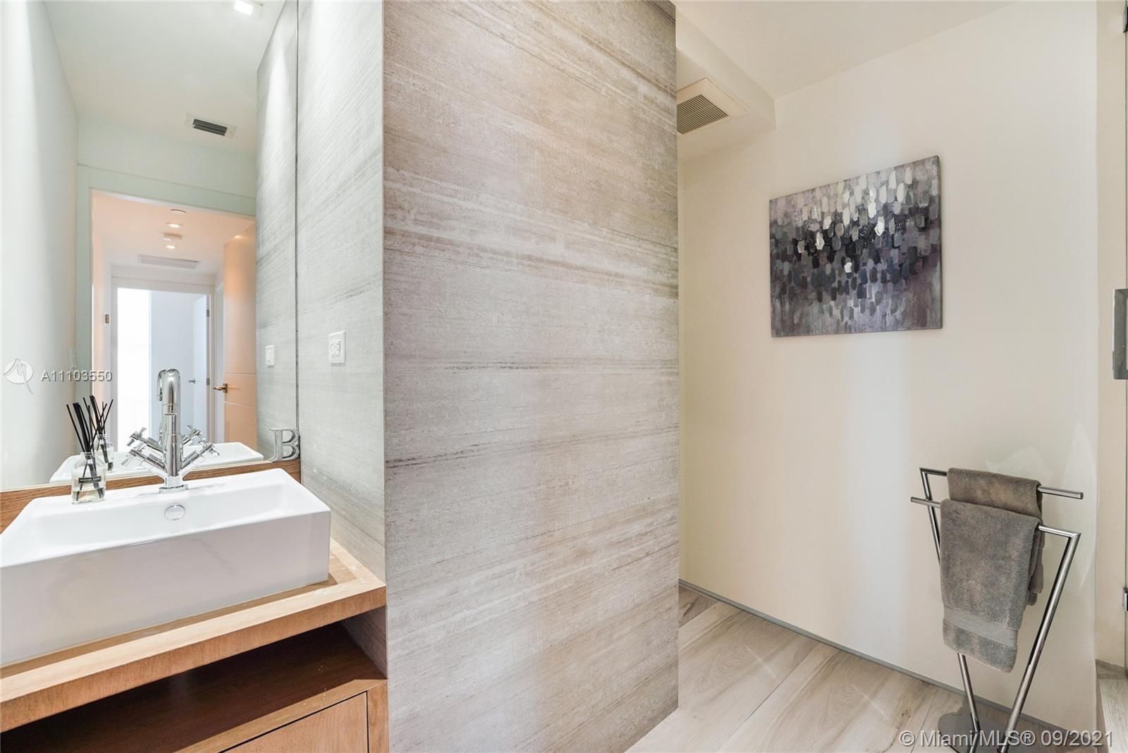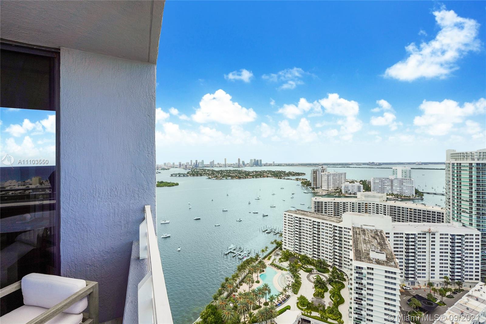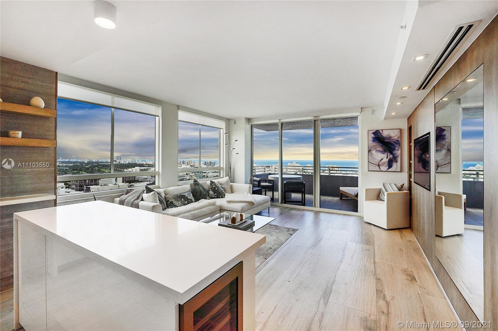 Experience the luxury of the renowned architecture and design firm Lineaire Designs and F&S Developers. This 2 bedroom, 2 bathroom condo on the 34th floor is completely renovated, featuring custom woodwork, extensive plank tiling, lacquer kitchen cabinetry, quartz counters, & modern appliances. The kitchen & living room areas have expansive city & water views, making for incredible evening and sunrise occasions. Other features include fully remodeled bathrooms, custom closet cabinetry, electric window blinds, & a large deep terrace off the living room. The Waverly is a bayfront luxury high-rise building that is full-service, including 24-hour security, front desk, valet, a bayfront pool w/jacuzzi, volleyball gym, tennis courts, business room, garage parking, & so much more.