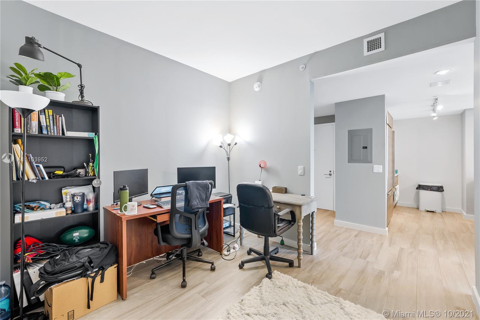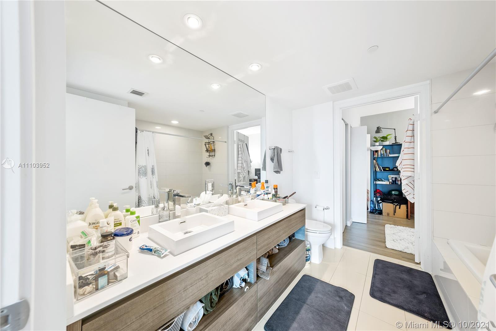 Beautiful Miami skyline views from this 1 bedroom+huge den (den can be use as a 2nd bedroom) corner unit. Facing south, Bright and Spacious. Beautiful open kitchen with quartz countertops & white high gloss cabinets, stylish bathroom, grey tile like-wood flooring thru-out, master closet already set-up & window treatment in master bedroom and living area. Amazing amenities such as rooftop deck/pool, fitness center, children playroom, movie theater. Rent includes: basic cable with HBO, internet, & water. unit is rented until June 15th 2022 at $2,650.00.