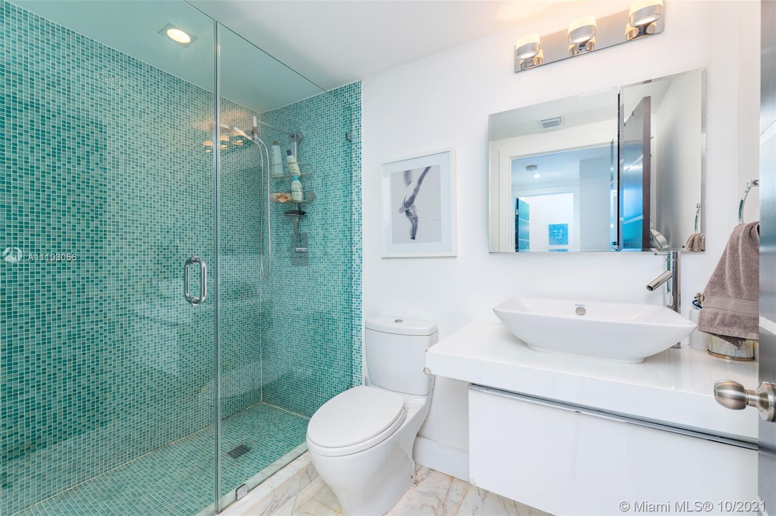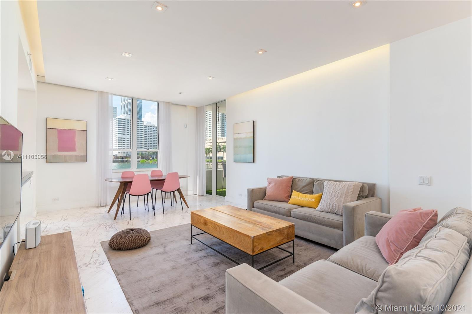 Spectacular waterfront 3 bedroom at Courvoisier Courts closest to the water gives the feeling of being on a yacht with Biscayne Bay views from every room. Beyond tasteful renovation with 2 private balconies steps to the water adding to the villa or home feeling that others simply don't have. Corner split floor plan with extra high ceilings, marble floors throughout, bedrooms with wood floors, custom Italian Bisazza tiled baths, window treatments & recessed lights. Chef's kitchen with bay views features modern cabinetry, quartz counters & top of the line appliances. Courvoisier Courts offers a beautiful bayfront pool, jacuzzi, gym, squash, entertainment room, business cntr, billiards, 24hr concierge & valet. Live a tranquil Brickell Key life on an exclusive island in the heart of Brickell.