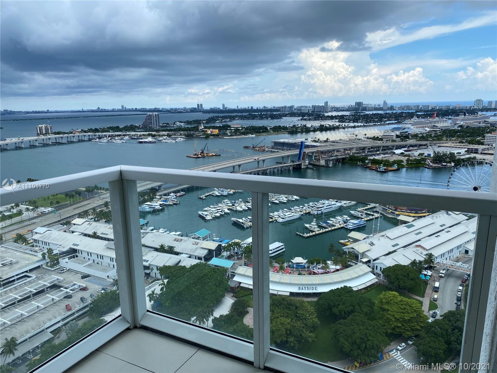 Fantastic DIRECT WATER VIEW from this magnificent condo in luxurious bldg in the heart of downtown Miami. Fall in love with the CITY SKYLINE & BISCAYNE BAY VIEWS from this 35th floor unit at the Vizcayne North Tower. This 2 bed/2 bath condo comes totally furnished by TUI, offers lots of closet space plus additional storage room and features 2 balconies & W/D in unit. Movie Theatre, 4 pools, full service health SPA & gym, billiard & party room with a kitchen for catering are just some of the amenities. Just steps away from fine dinning, shops & entertaining. Only 15 min away from the Miami Airport. Priced to sell fast